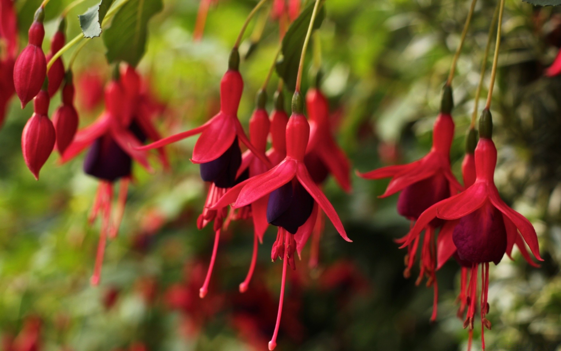Rote Hängeblüten in der Luft im Naturgarten
