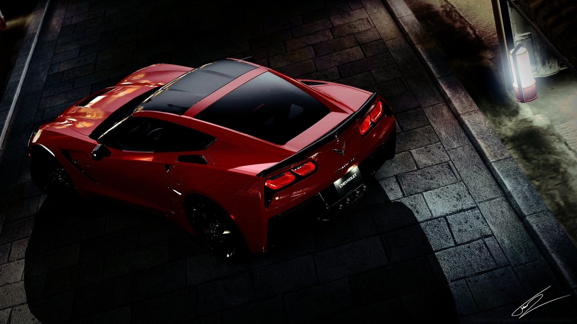 Roter Sportwagen blieb auf dem Bürgersteig stehen