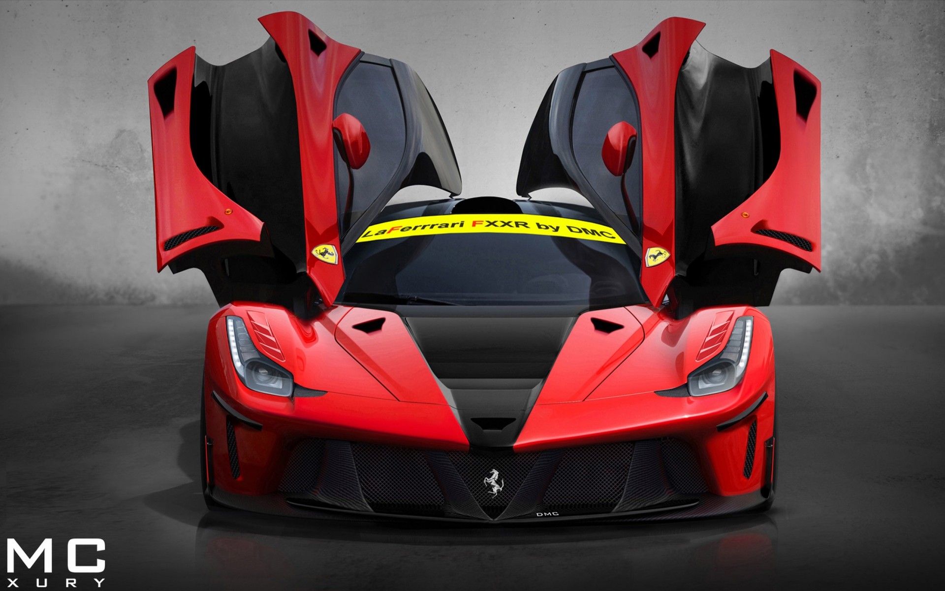 Rote Ferrari Stoßstange auf grauem Hintergrund