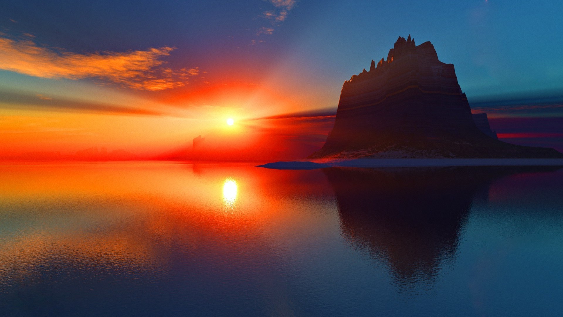 Roter Himmel bei Sonnenuntergang über dem grünen Feld