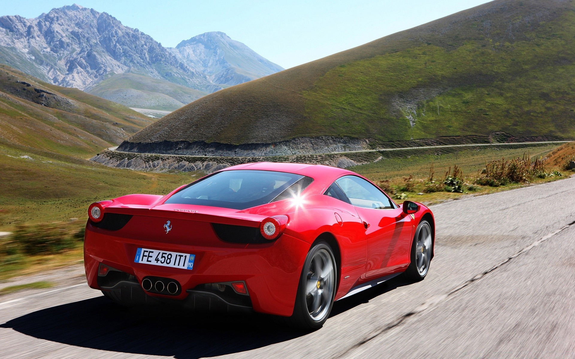 Ein roter Alfa romeo, der mit hoher Geschwindigkeit fährt