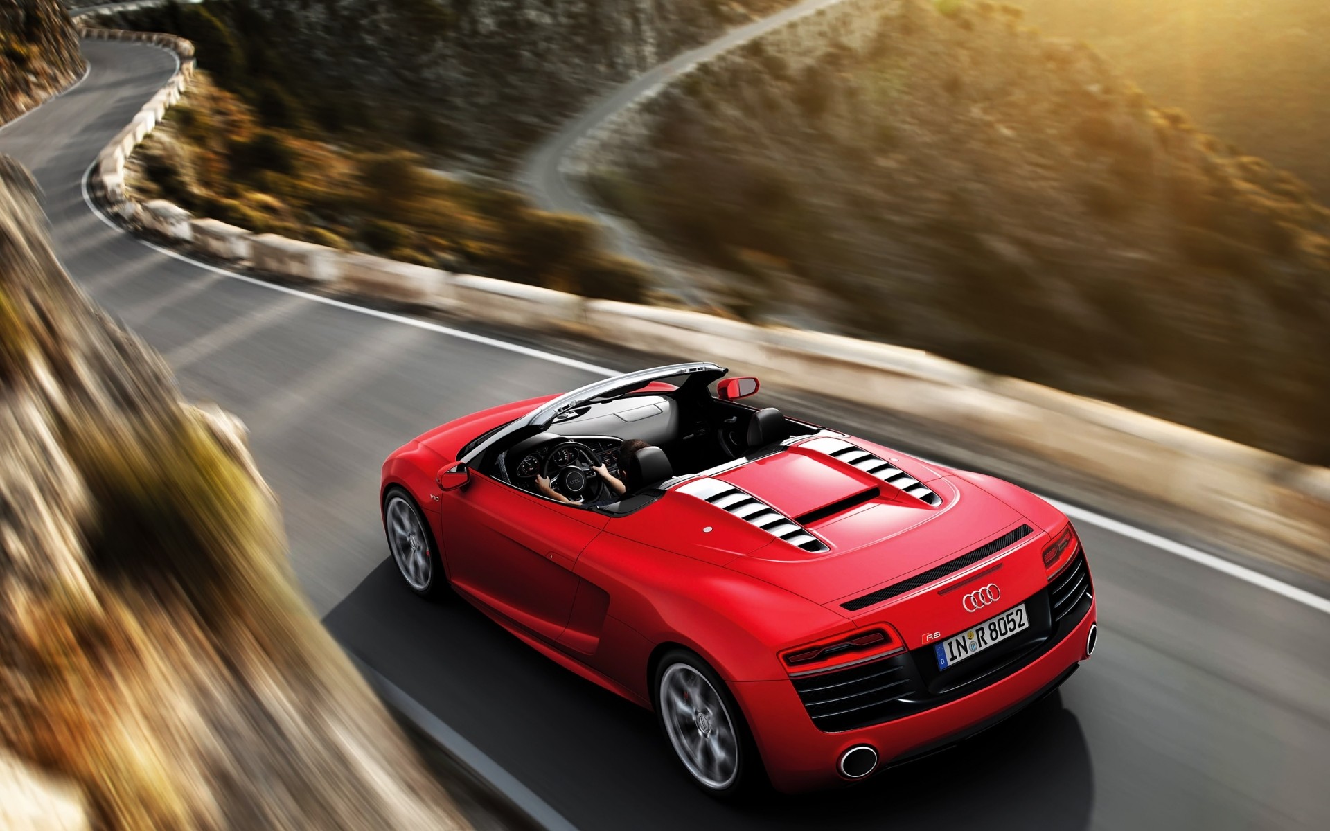 Roter Sportwagen auf schmaler, kurvenreicher Straße