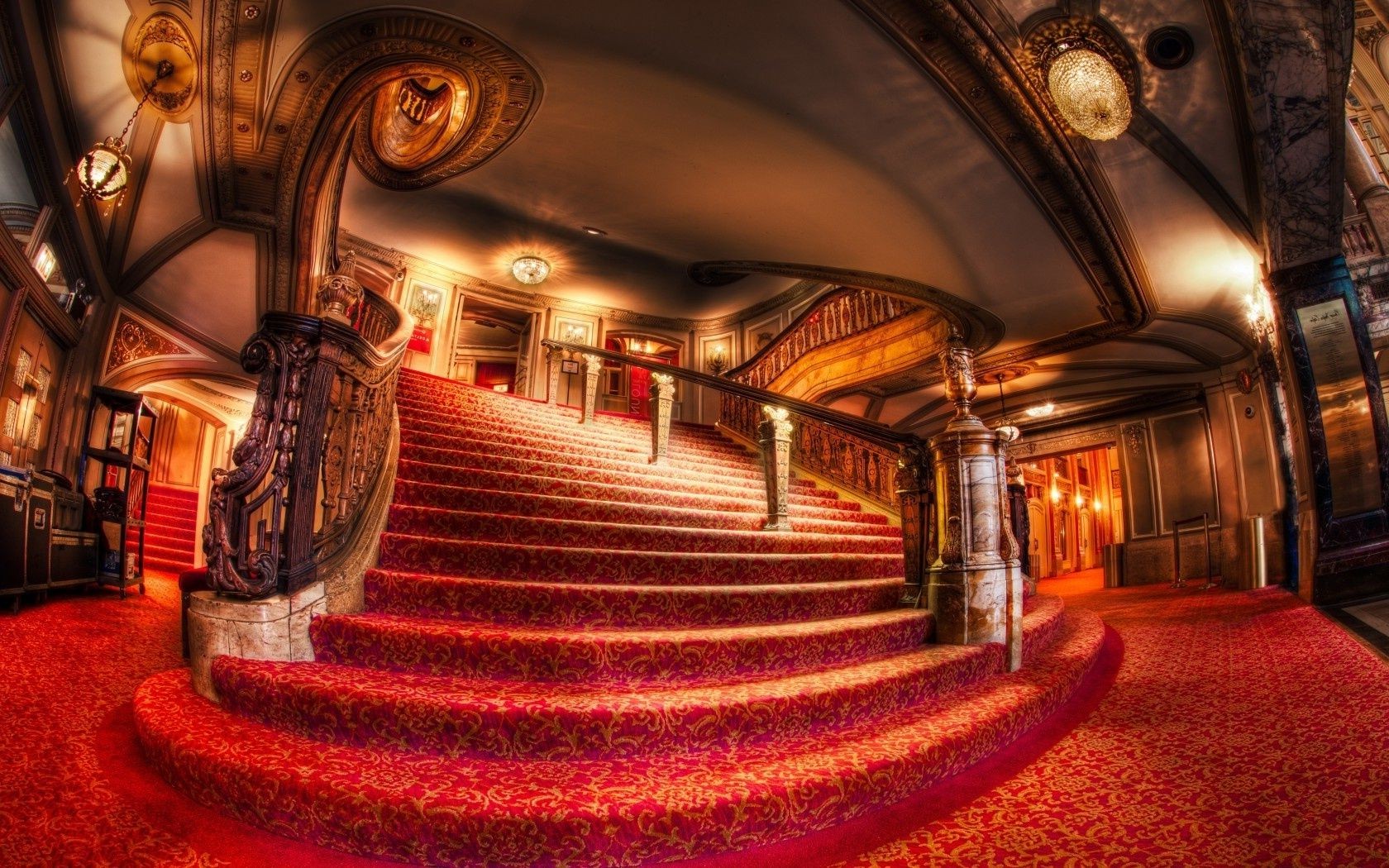 Ein reich verziertes Hotel mit einem roten Teppich