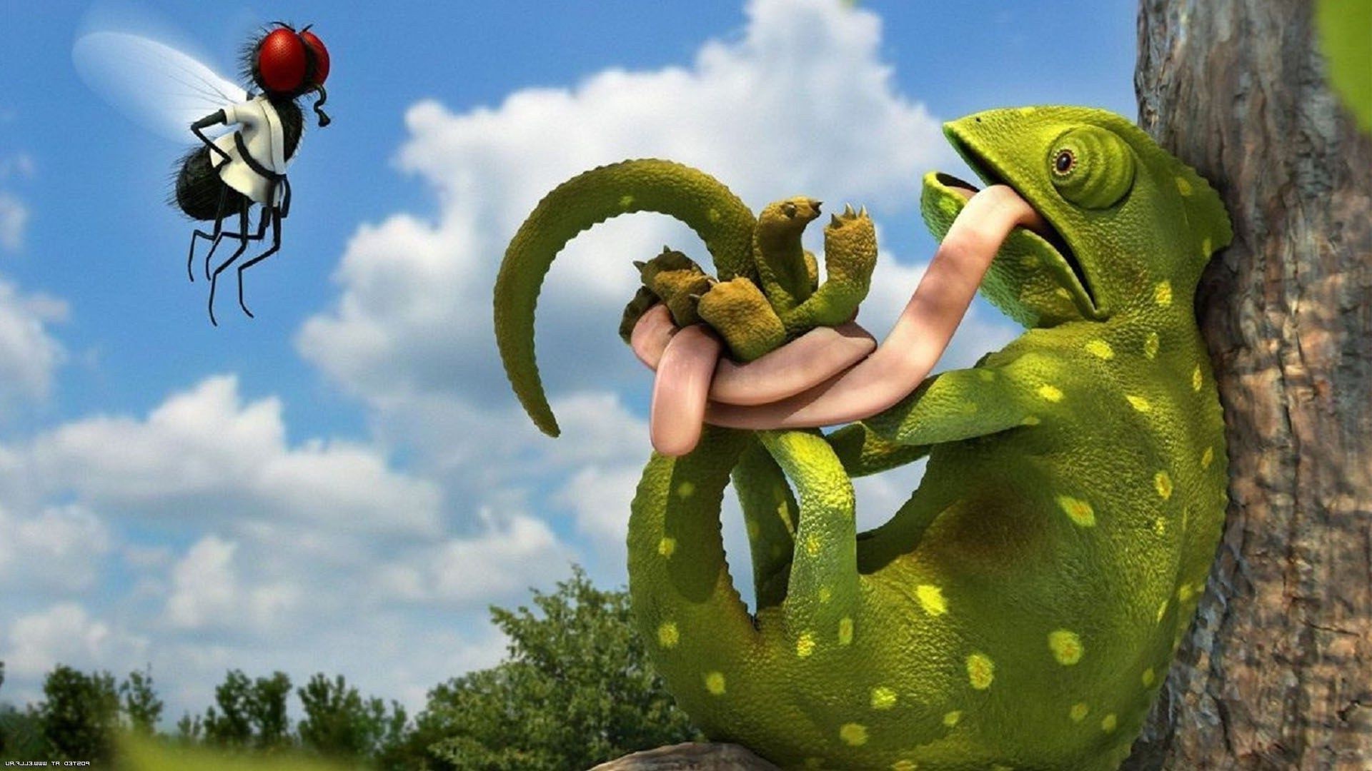 Das Chamäleon aus dem Zeichentrickfilm hat sich in seiner Sprache verstrickt