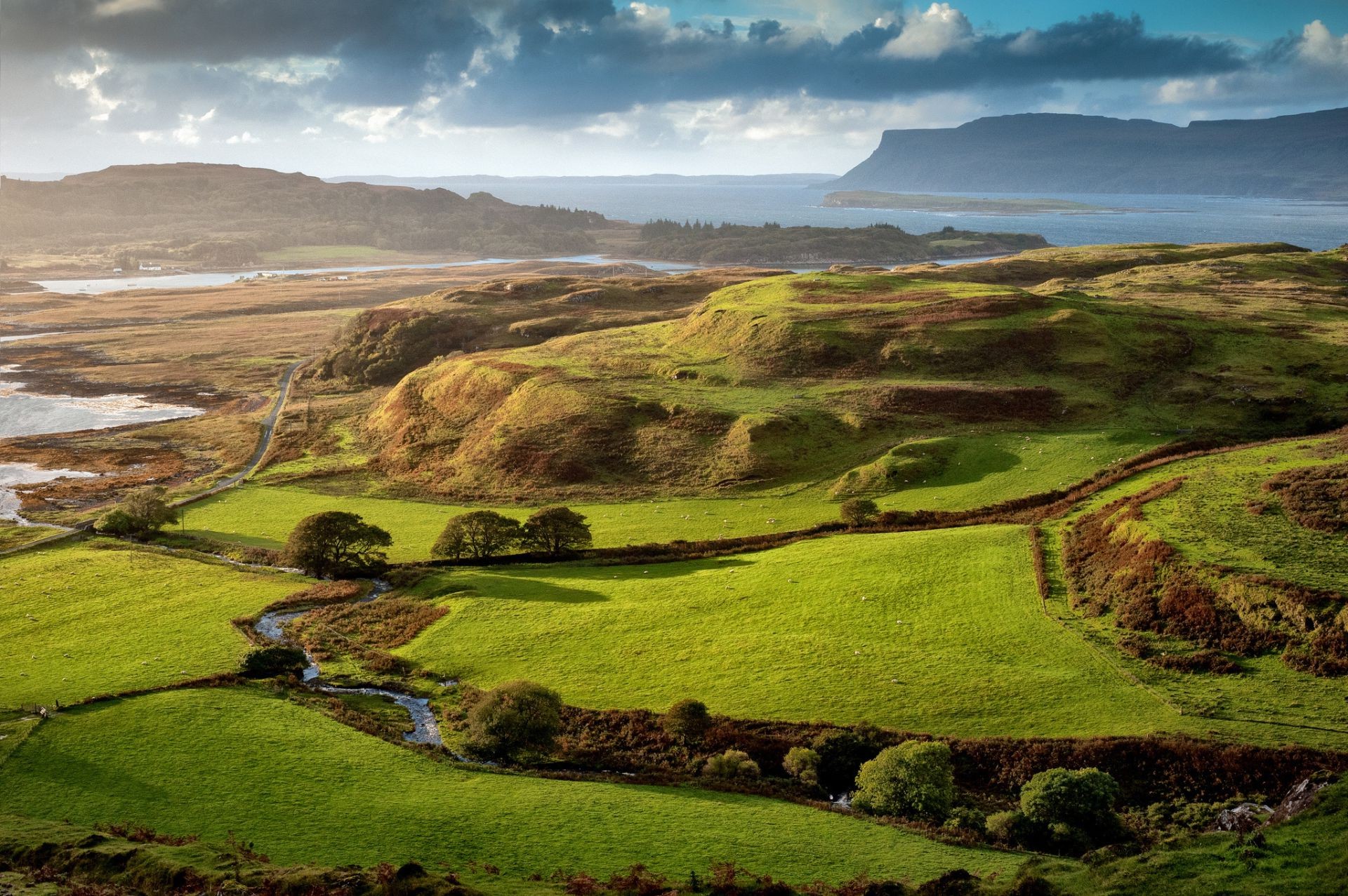 Die Landschaft des Himmels in den Wolken und der bergige Hang