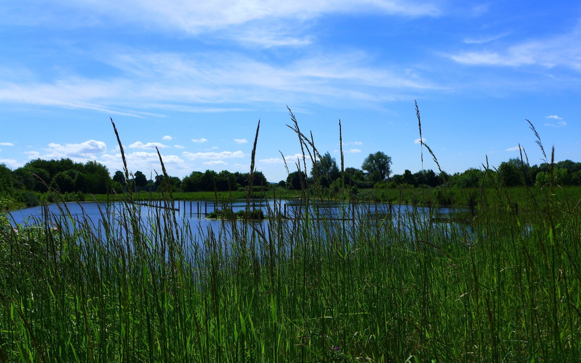 Die friedliche Landschaft eines im Gras verlorenen Sees