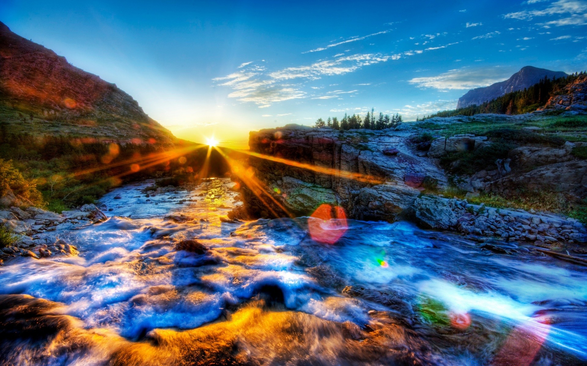 Landschaft der Natur. Himmlischer Sonnenuntergang