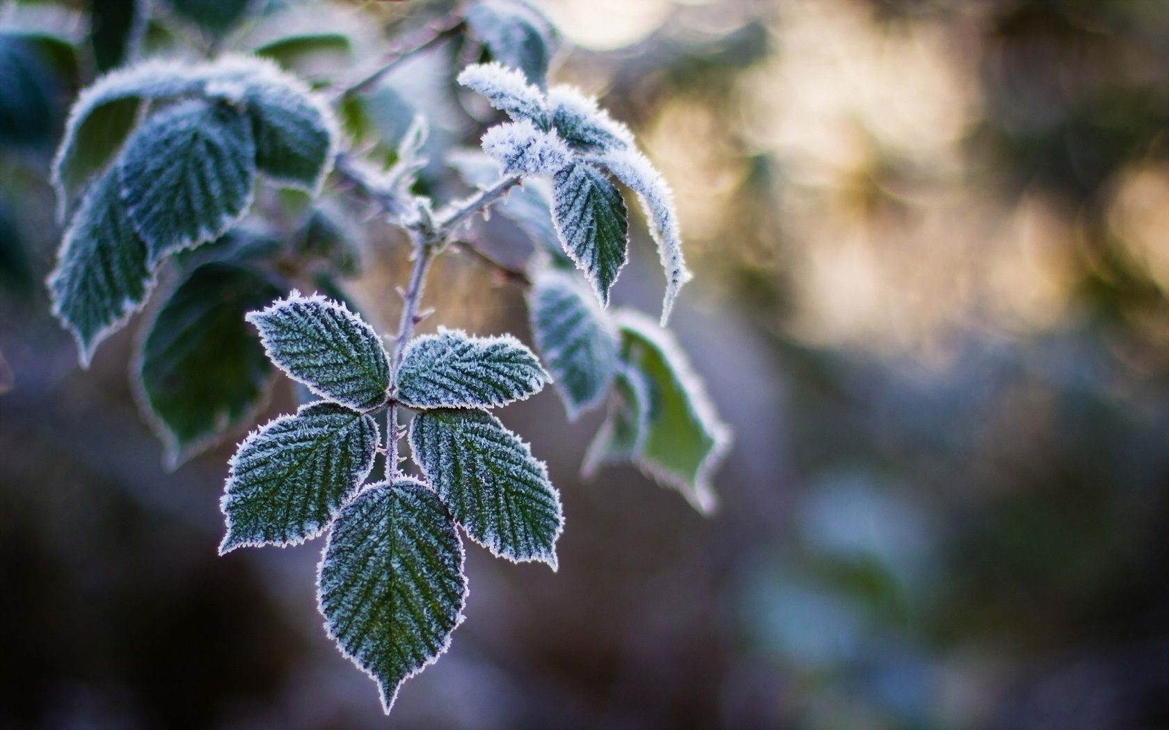 Grüne Blätter im Frost