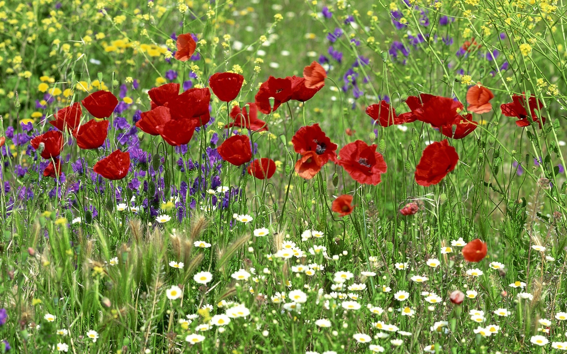 Herbstliche Landschaft. Birken mit gelben Blättern. Vergilbte Farne