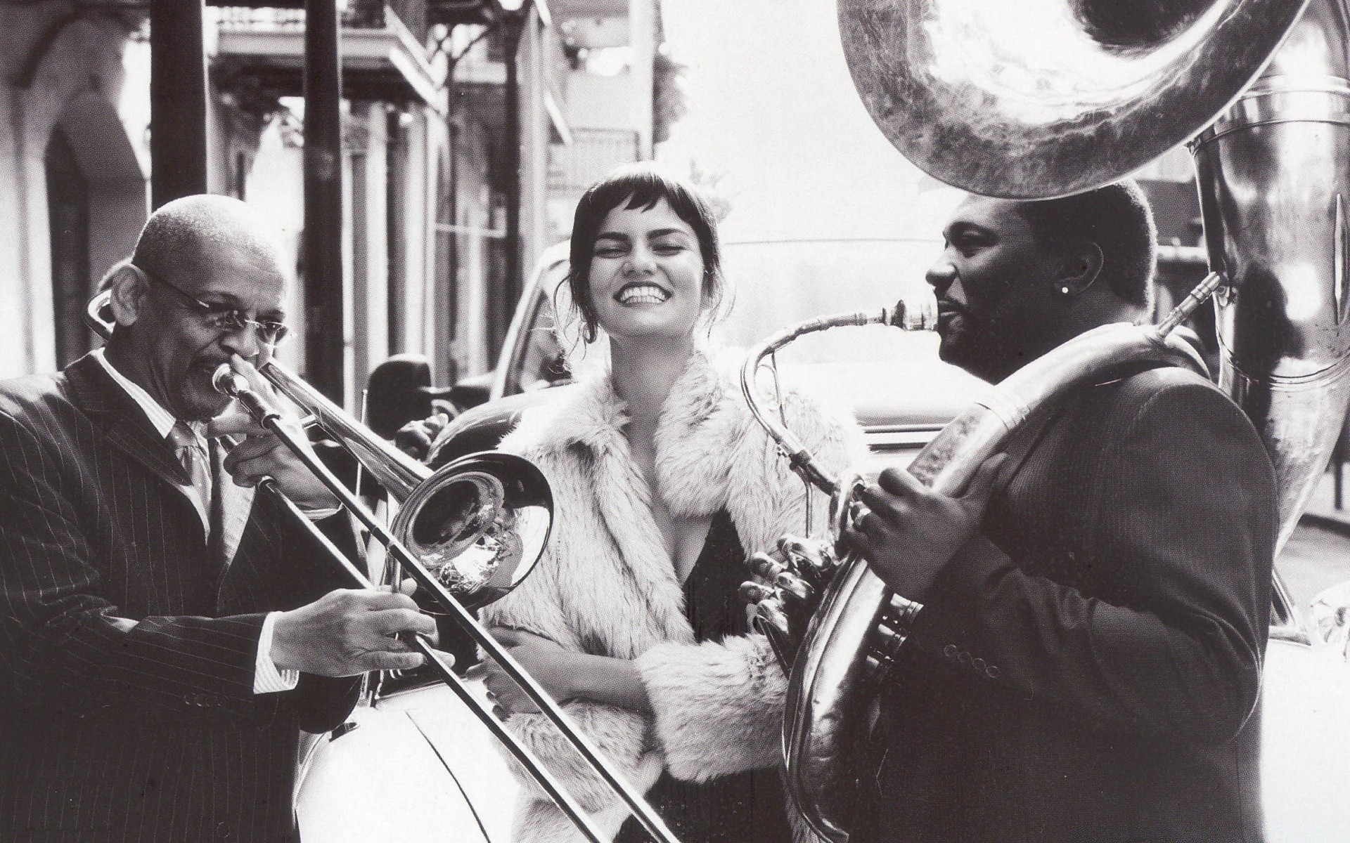 Modell und Musiker, die Jazzporträts spielen