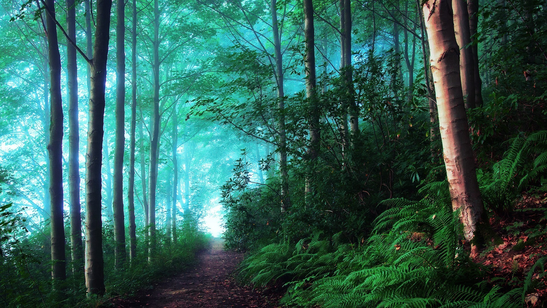 Ein mysteriöses Walddickicht, die Sonnenstrahlen durch das Laub
