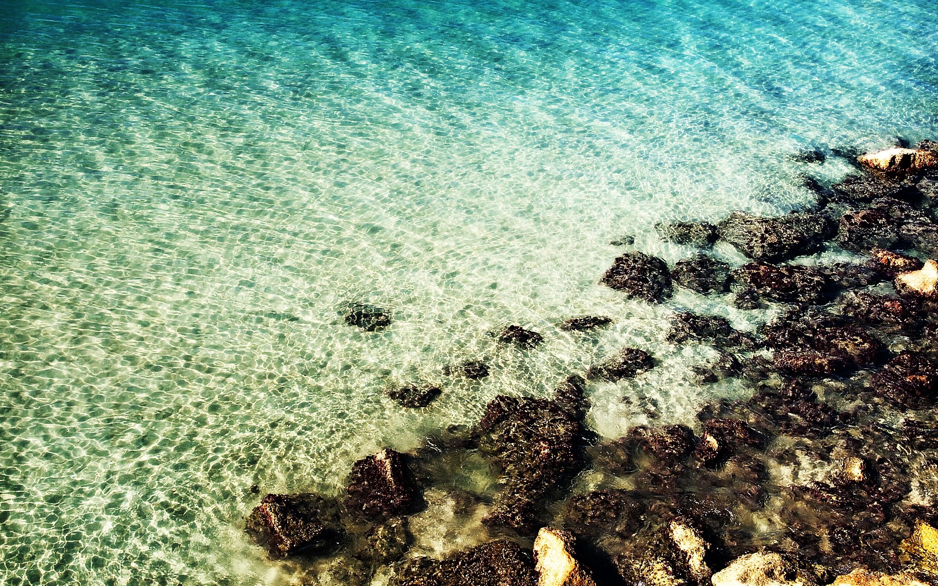 Sonniges meer mit steinen