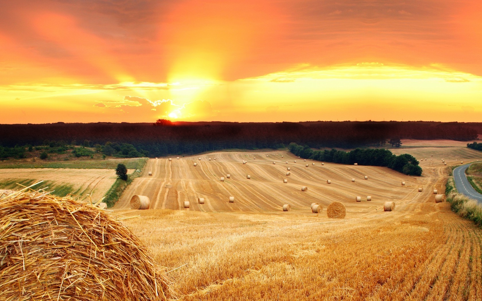 Foto von Weizen auf Sonnenuntergang Hintergrund