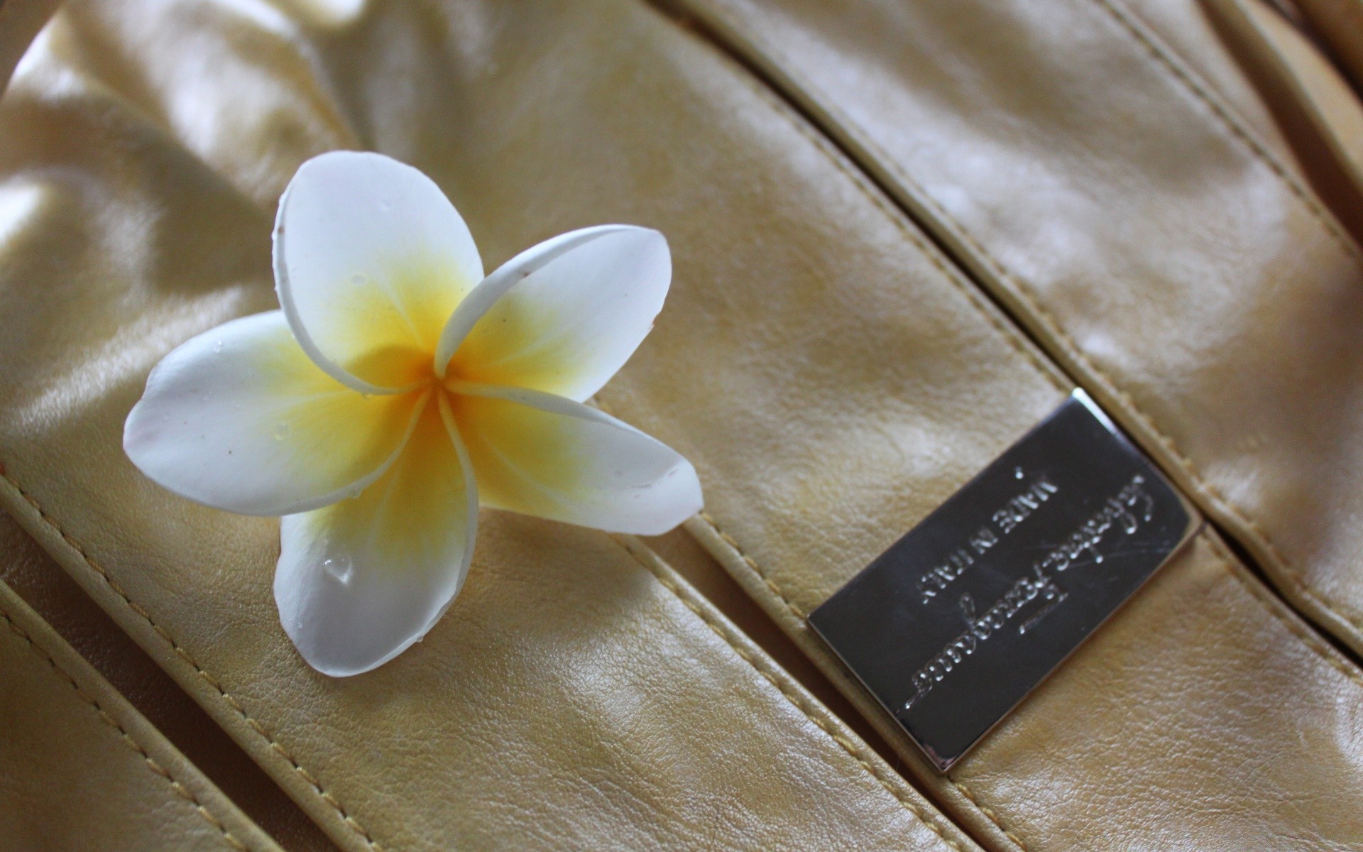 Foto einer Blume auf Lederkleidung