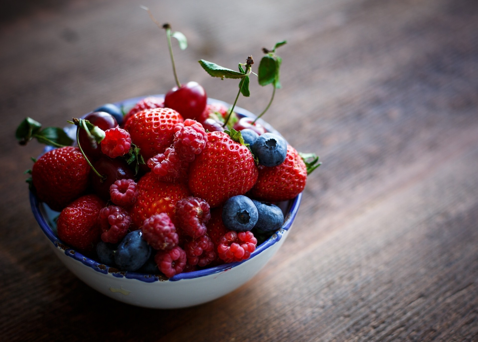 Satz von Beeren in einer Schüssel auf dem Tisch