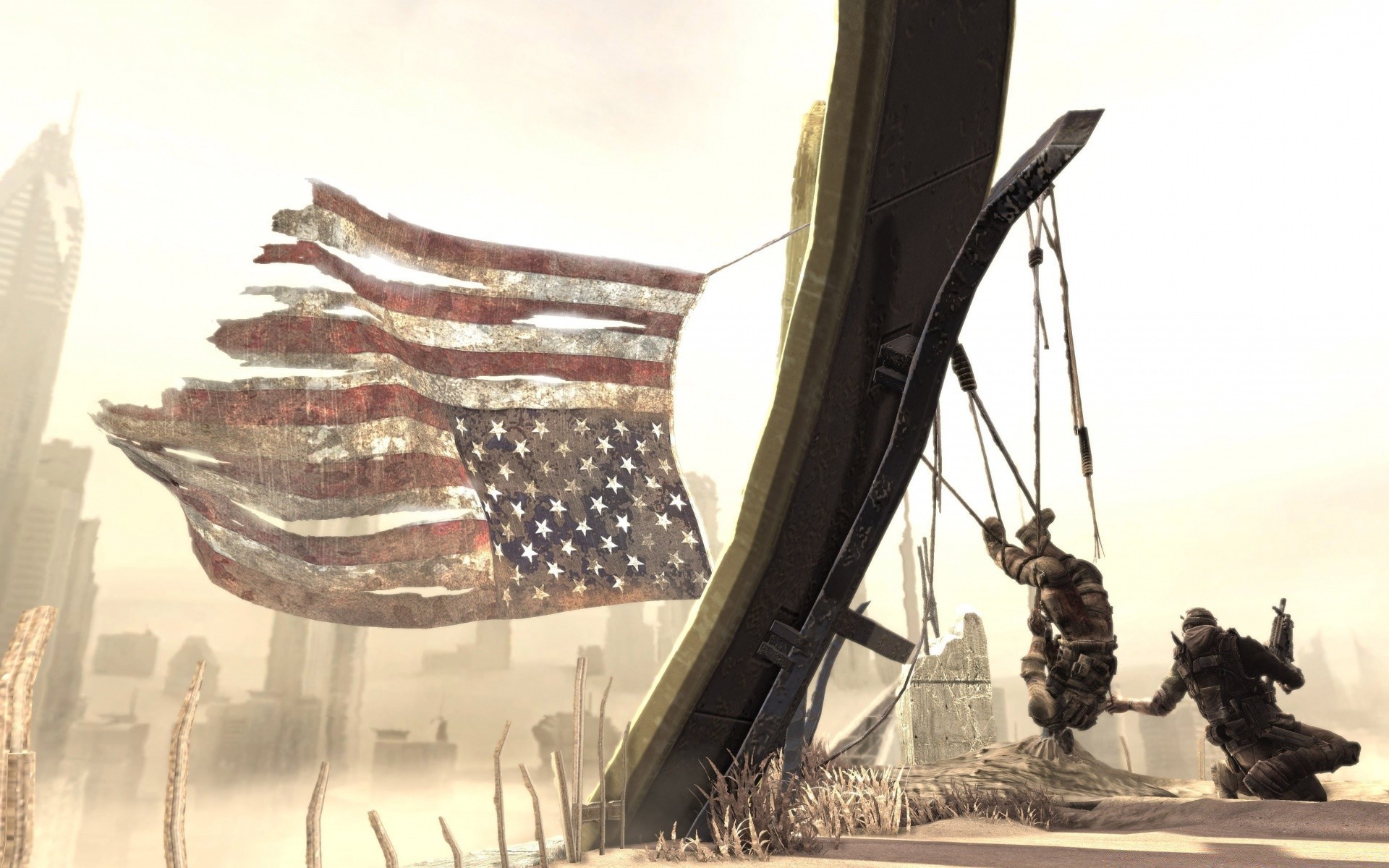 Ein erwachsener Krieger mit einer Waffe in der Hand