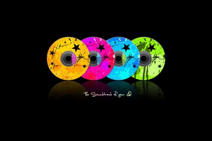 Helle mehrfarbige scheiben auf schwarzem hintergrundHelle mehrfarbige Scheiben auf schwarzem Hintergrund