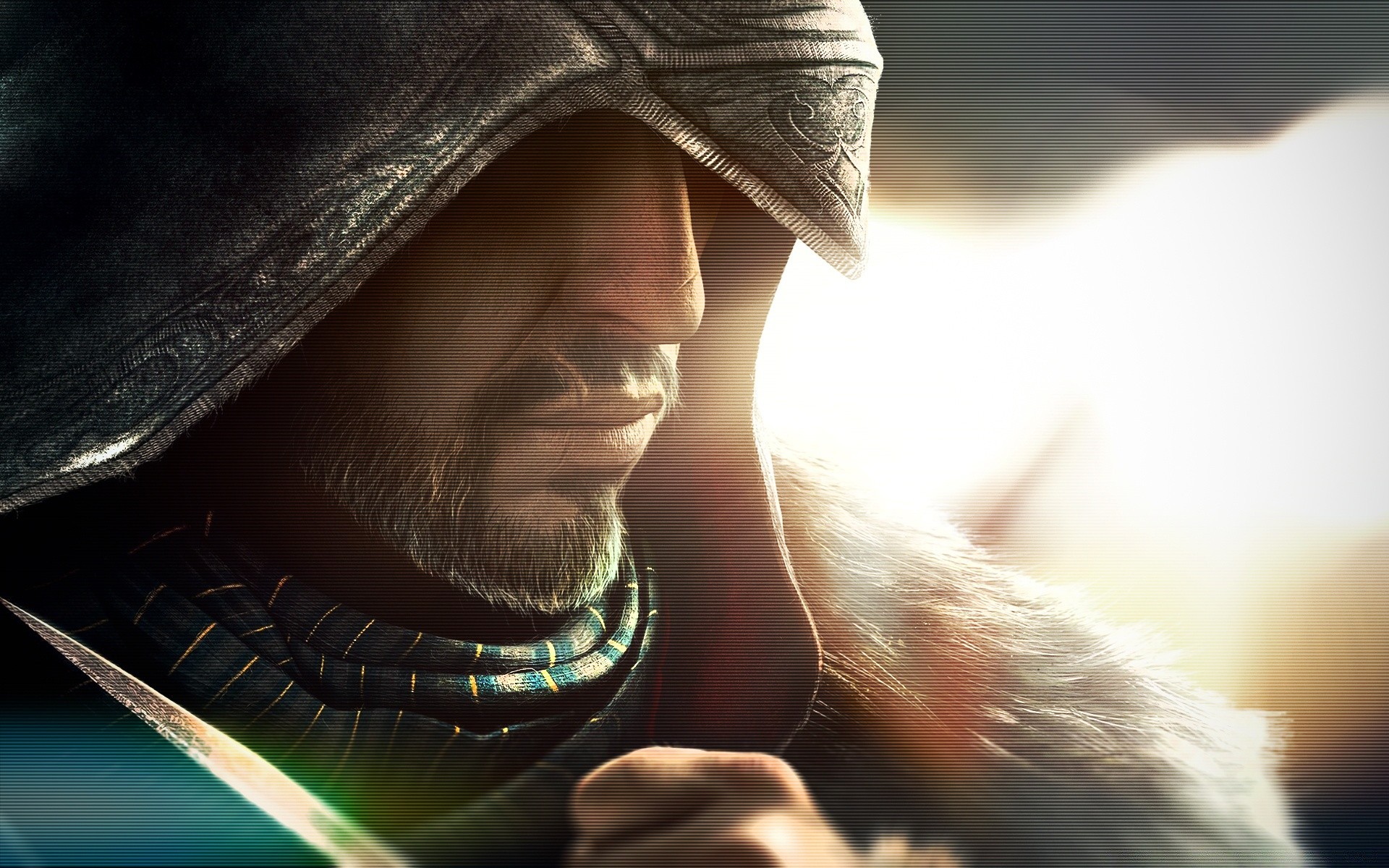 Tanzen vor dem Hintergrund des Feuers. Assassin's creed Helden