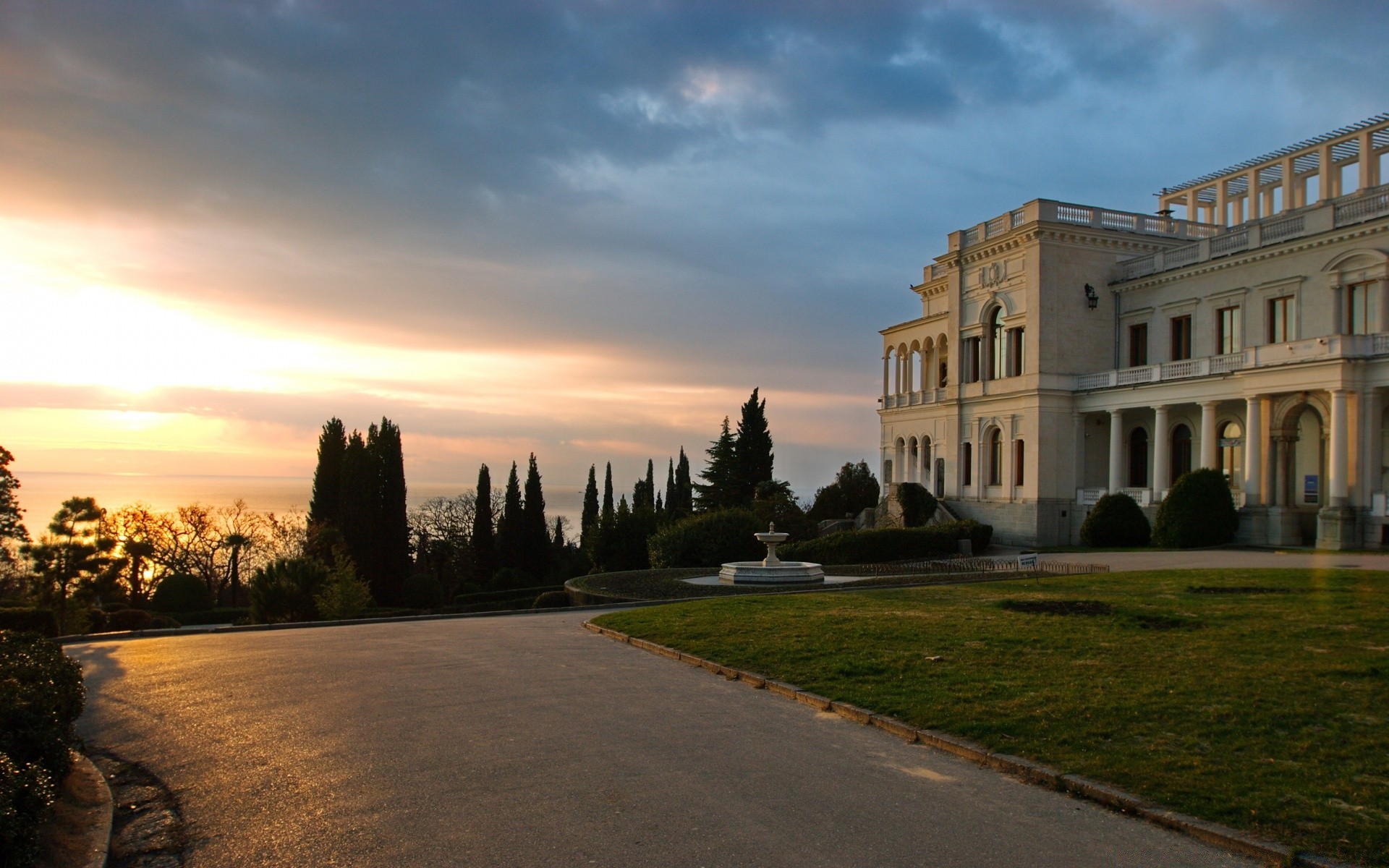 Burglandschaft auf Sonnenuntergang Hintergrund