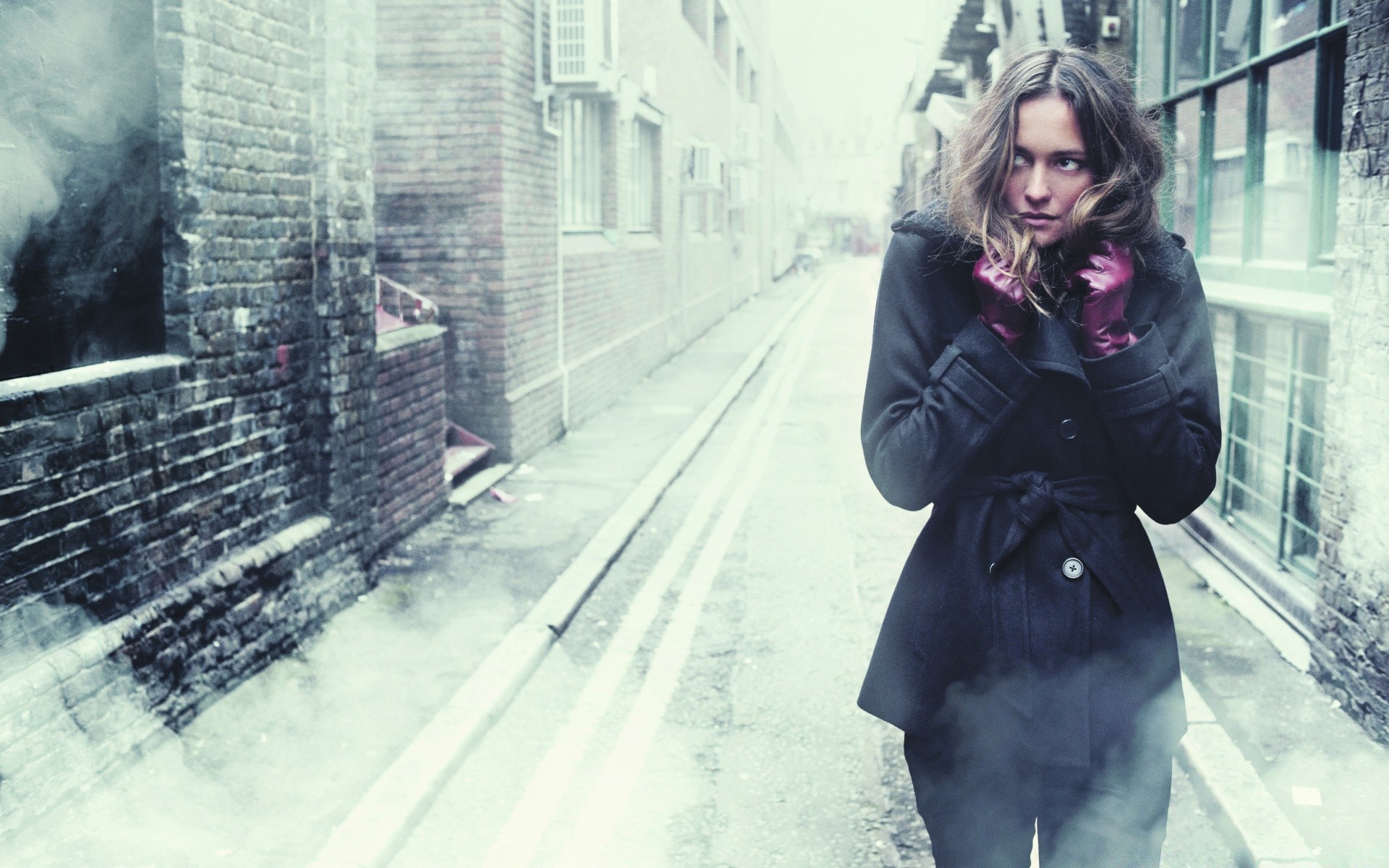Mädchen im kalten Herbst Schnee