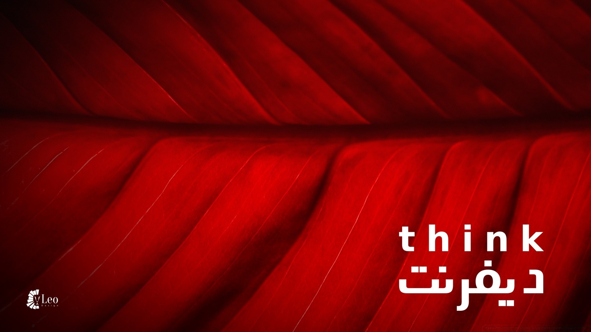 Denken und Schriftzug auf Arabisch auf rotem Grund