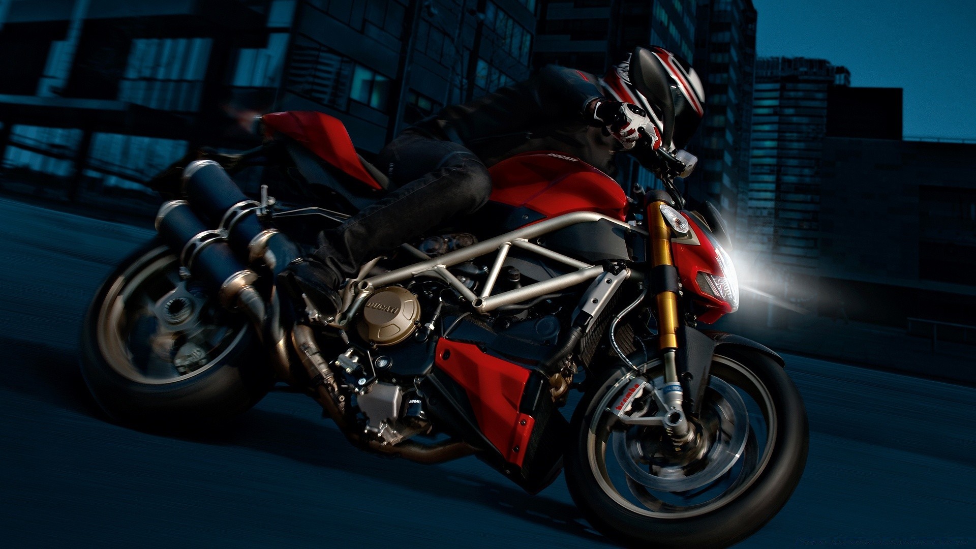 Schwarz-rotes Motorrad bei Nacht