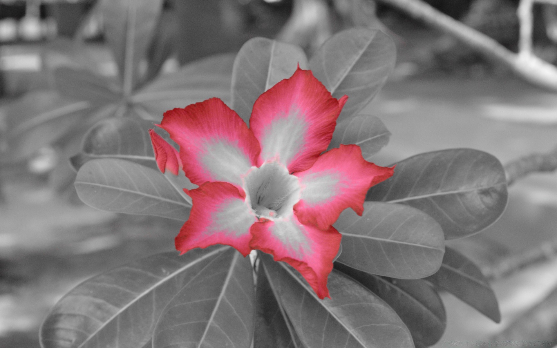 Rote Blume auf einem Schwarz-Weiß-Foto