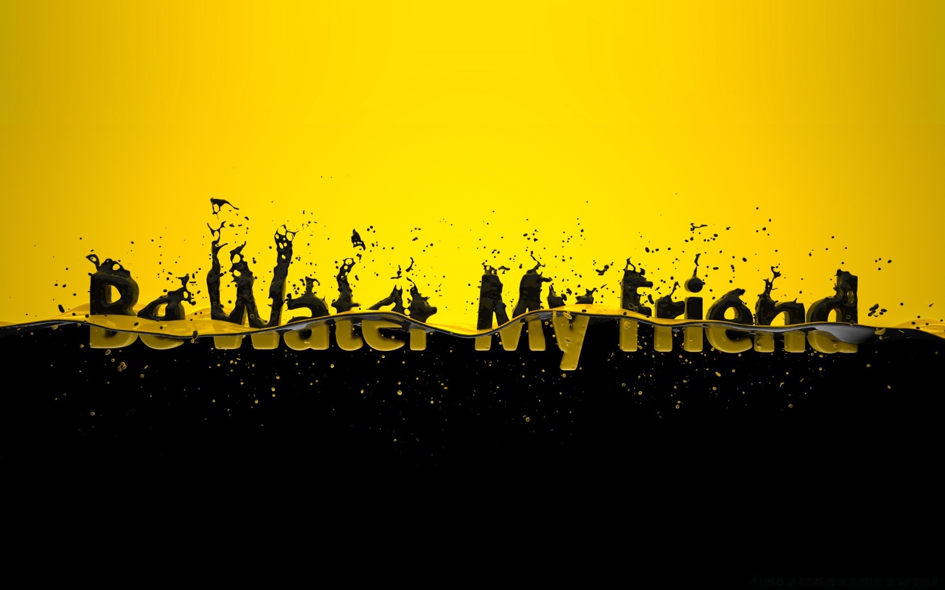 Der Text ist halb im Wasser auf einem schwarz-gelben Hintergrund platziert