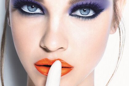 Glamouröses mädchen mit hellem lippenstift auf den lippenGlamouröses Mädchen mit hellem Lippenstift auf den Lippen