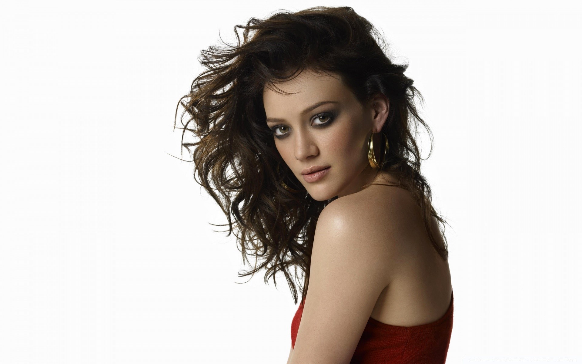 Schauspielerin im roten kleid auf weißem hintergrundSchauspielerin im roten Kleid auf weißem Hintergrund