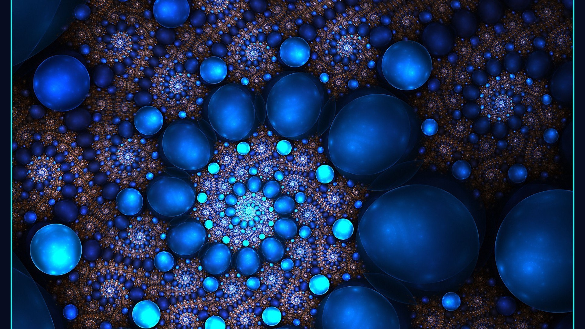 Blaue und leuchtende Kugeln unterschiedlicher Größe
