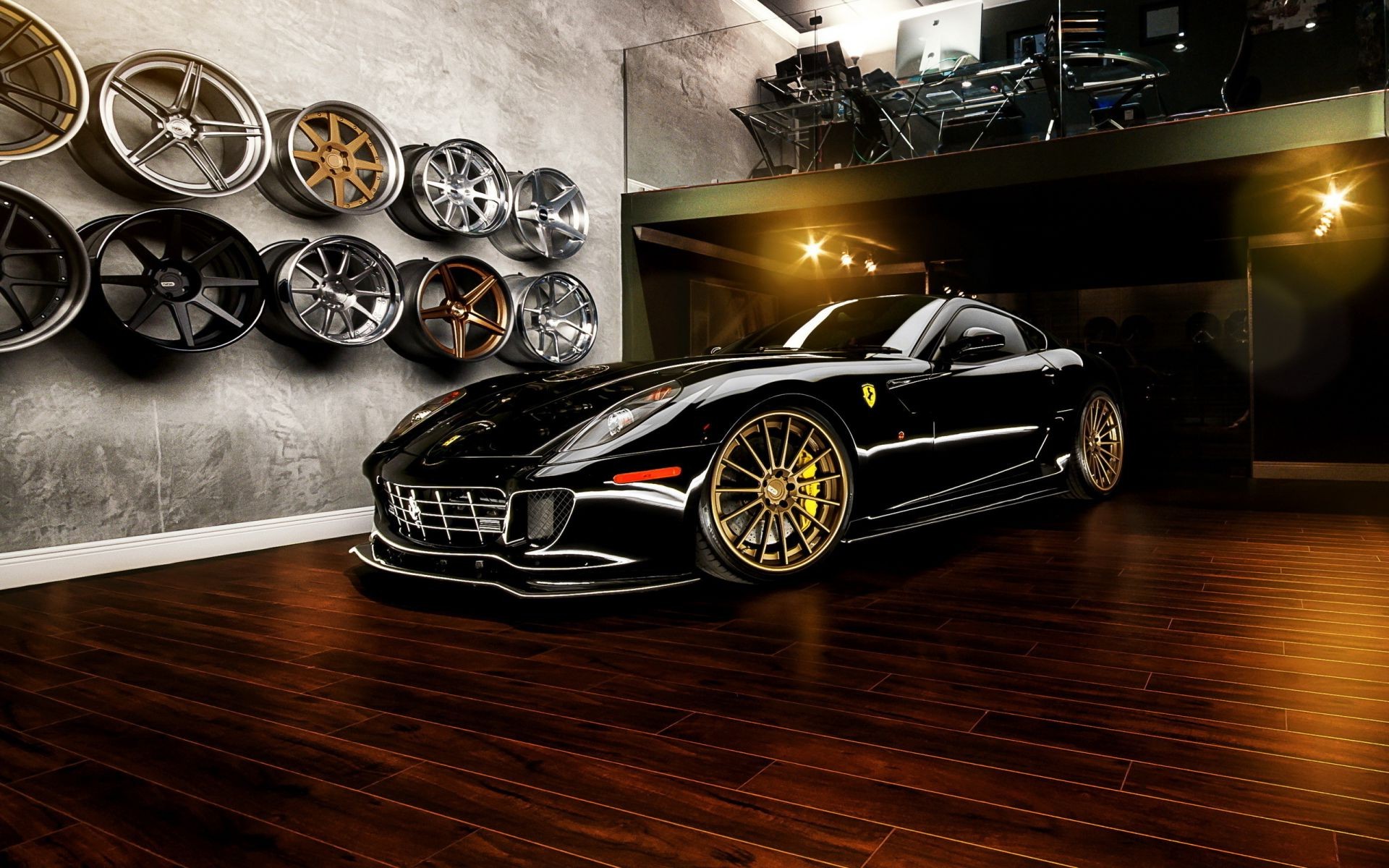 Sportwagen und in der Nähe ein schwarzer Hubschrauber