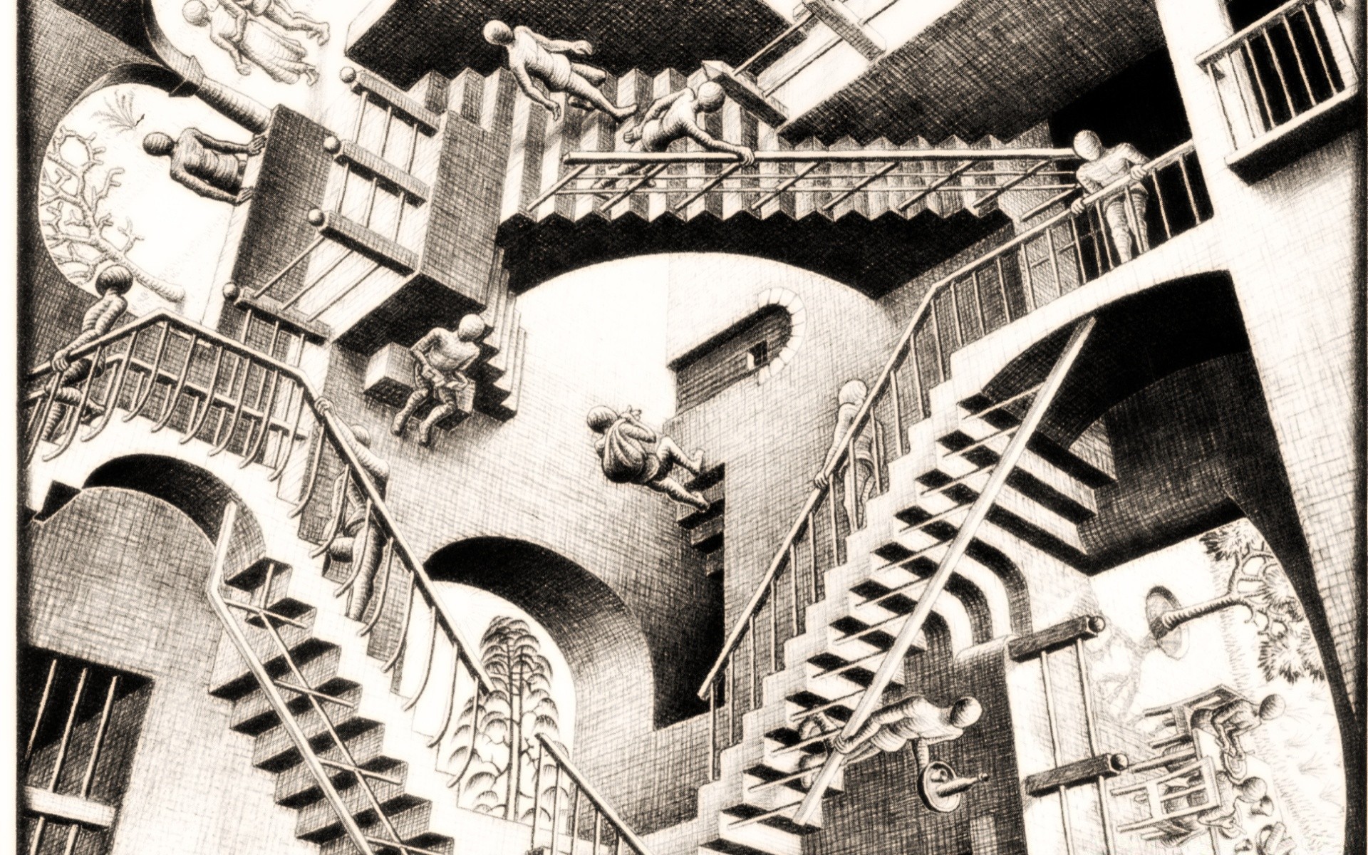 Die fünf vor der Frau sind alle in seltsamen Kleidern