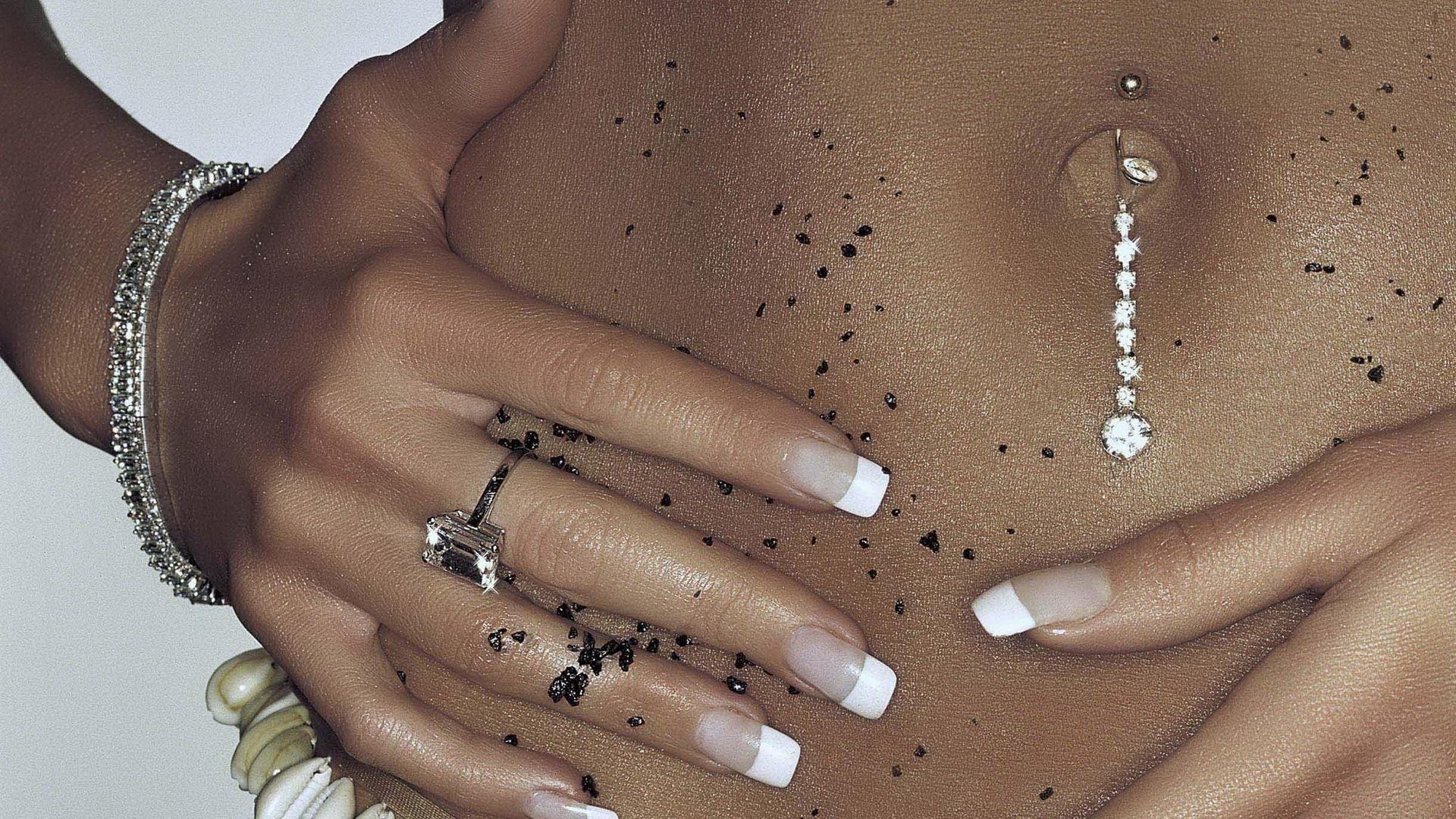 Durchbohrter nabel eines mädchens mit einer schönen maniküreDurchbohrter Nabel eines Mädchens mit einer schönen Maniküre