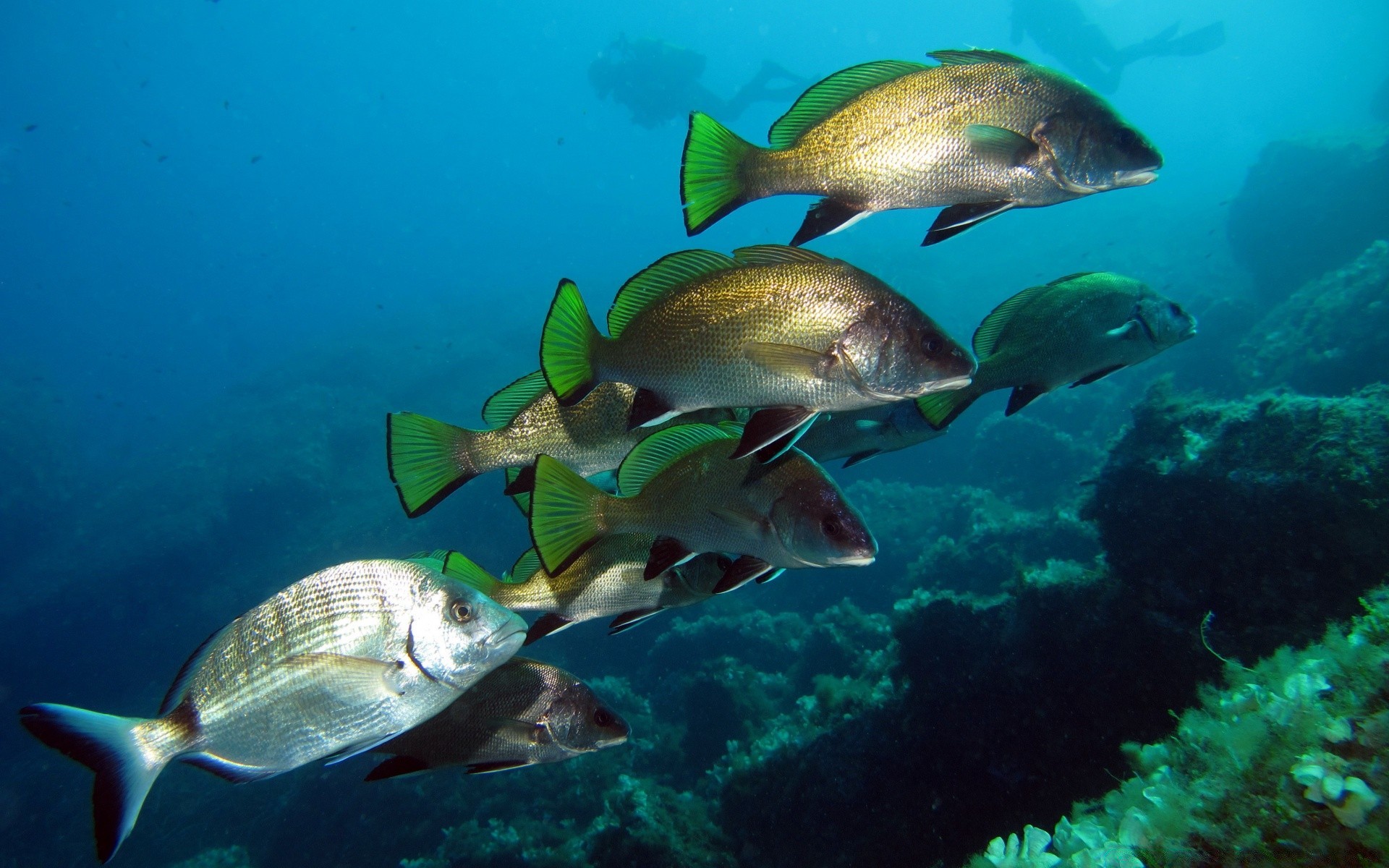 Delfin orange Fische gelb gestreift unter den Meeresriffen