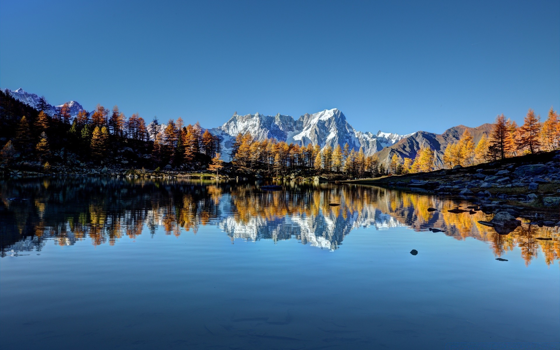 Ein verschneiter berg, ein see inmitten eines waldesEin verschneiter Berg, ein See inmitten eines Waldes