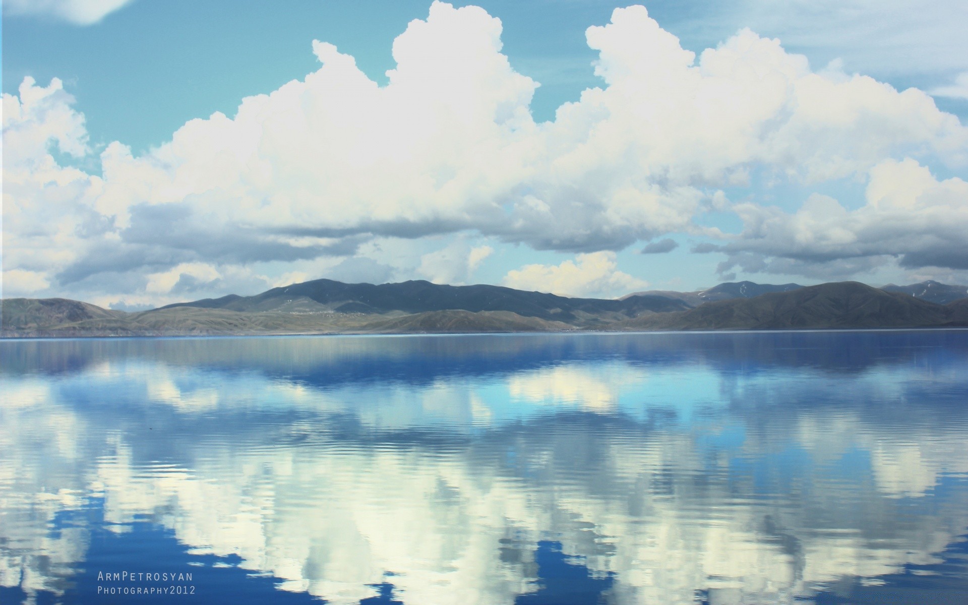 Reflexion von Cumulus-Wolken im See