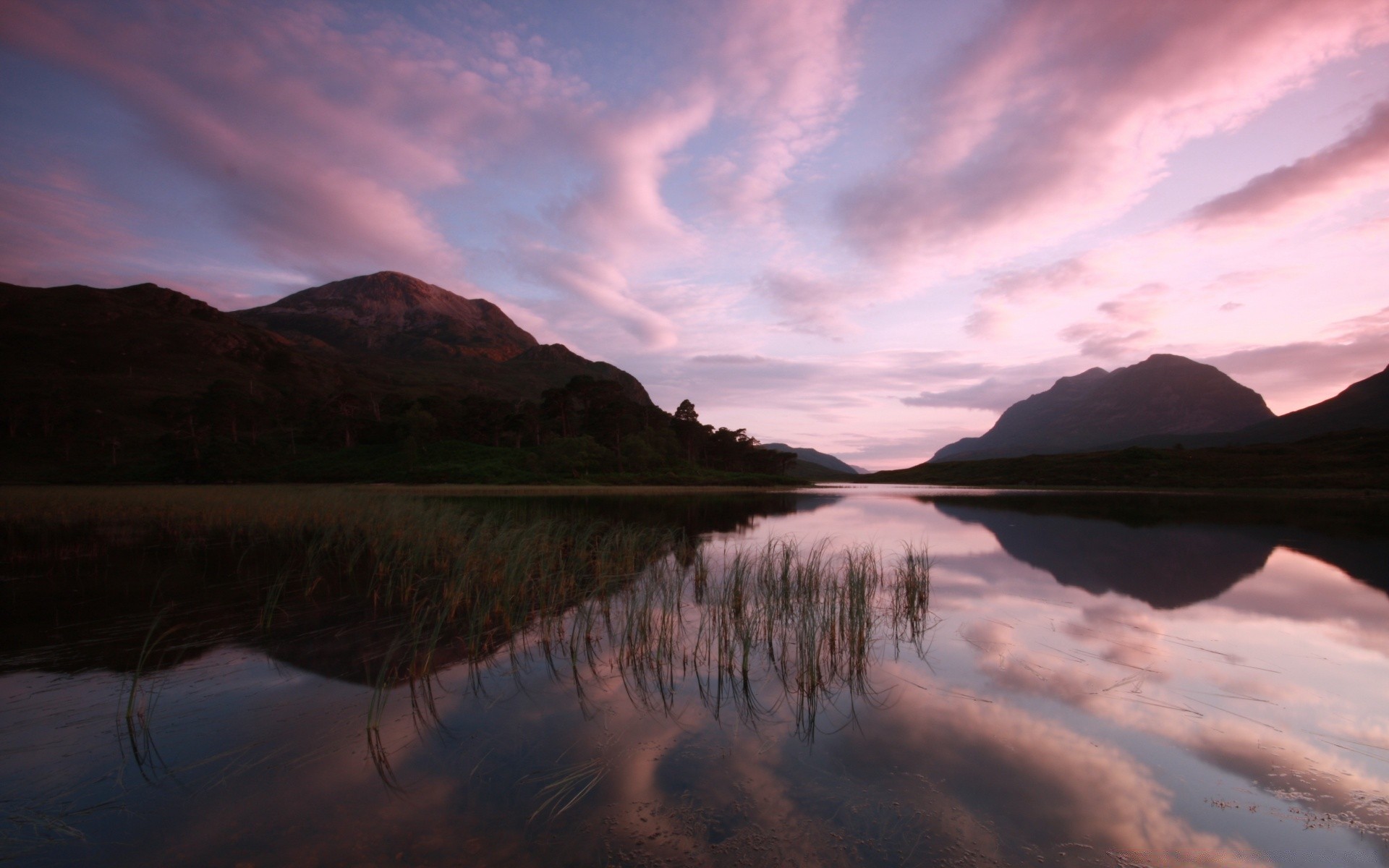 Rosa sonnenuntergang. rosa wolken über dem see. die berge. dämmerungRosa Sonnenuntergang. Rosa Wolken über dem See. Die Berge. Dämmerung