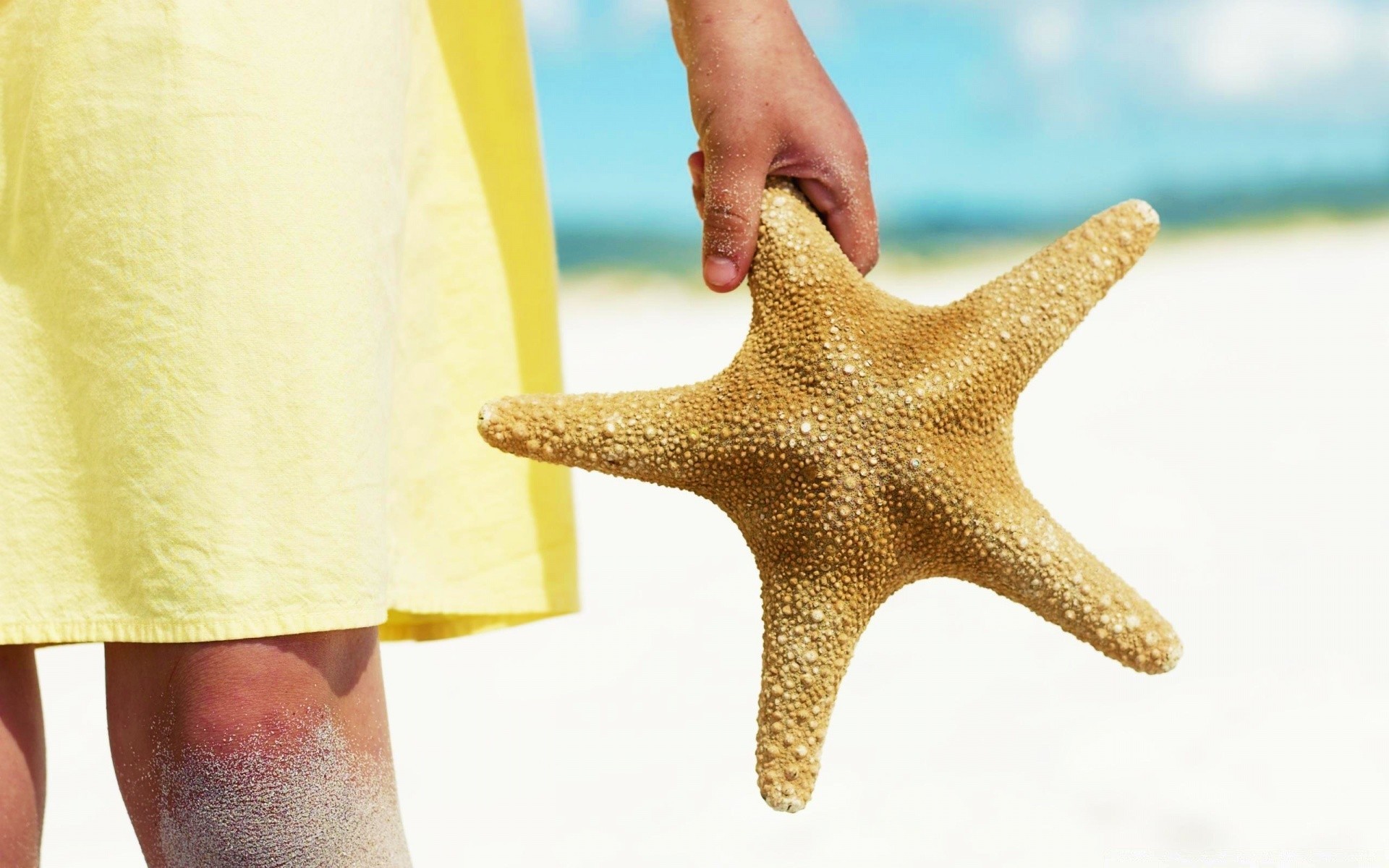 Mädchen mit Seestern am Strand