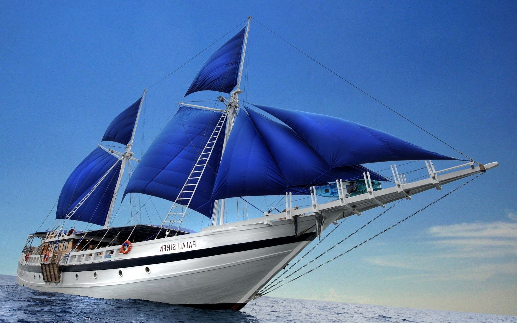 Ein Geschwader von Schiffen segelt durch die flache Meerenge