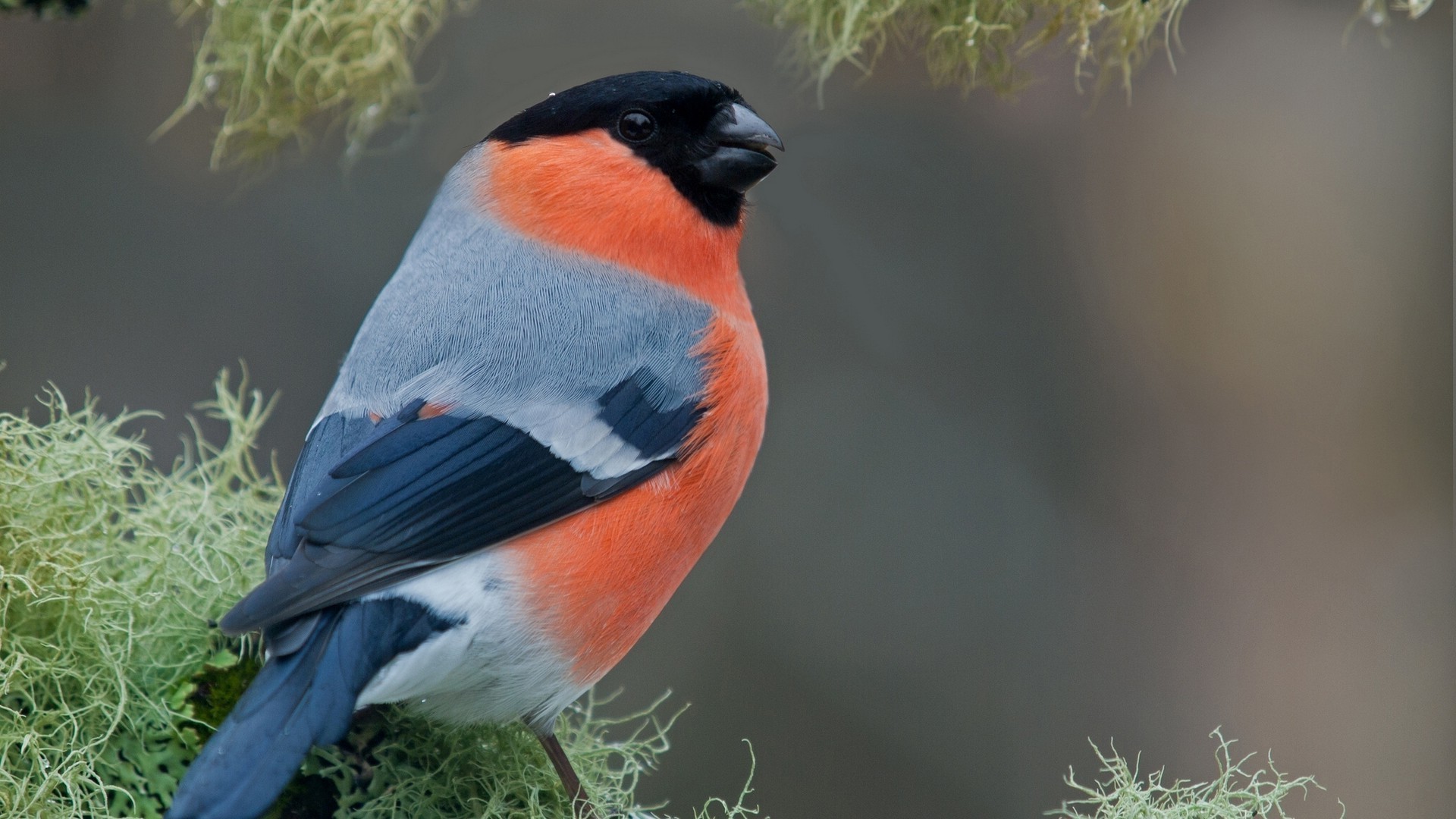 Ein Vogel, der seine Flügel gefaltet hat, aber einen Zweig hat