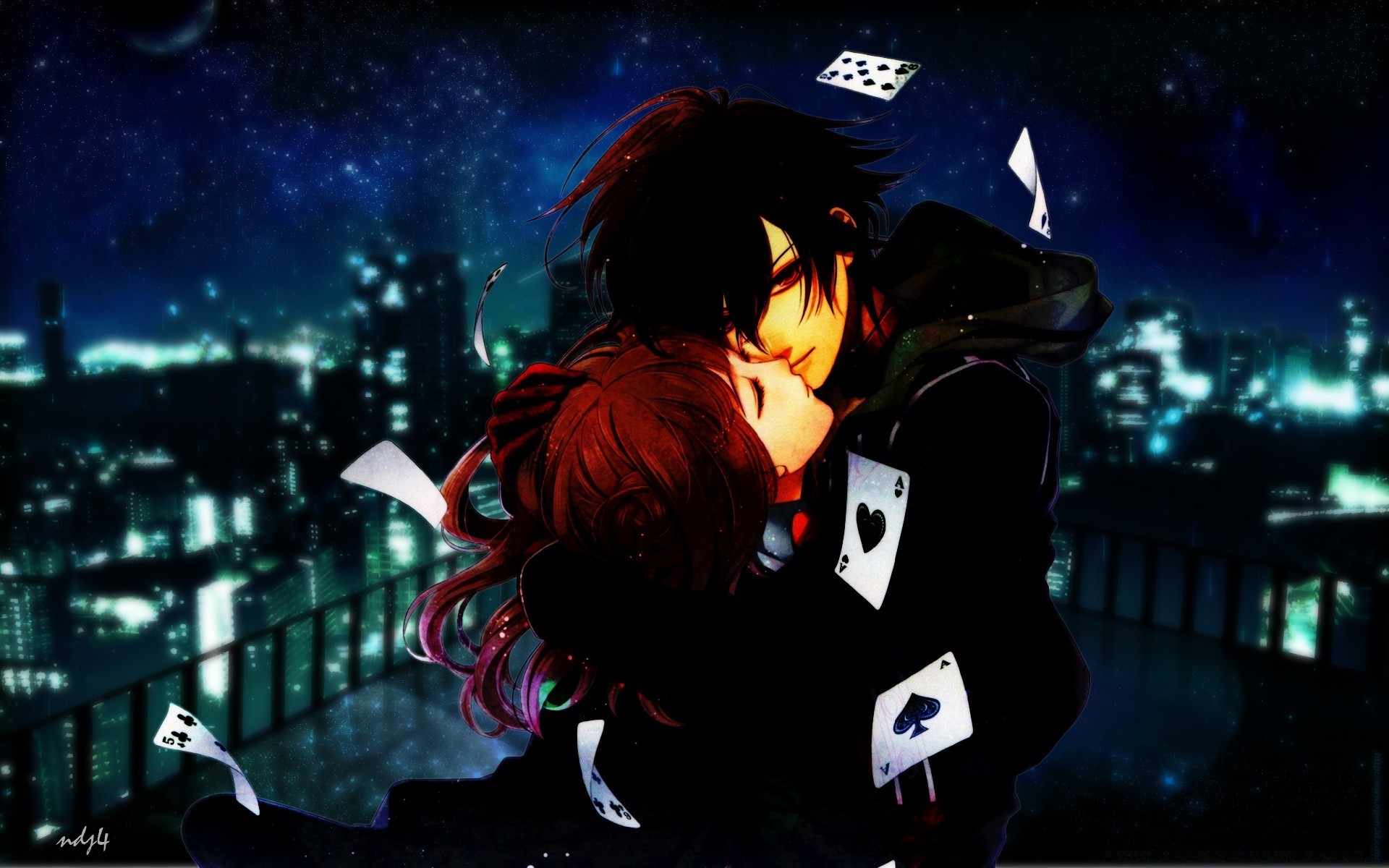 Kuss der Liebenden auf dem Dach des Hauses