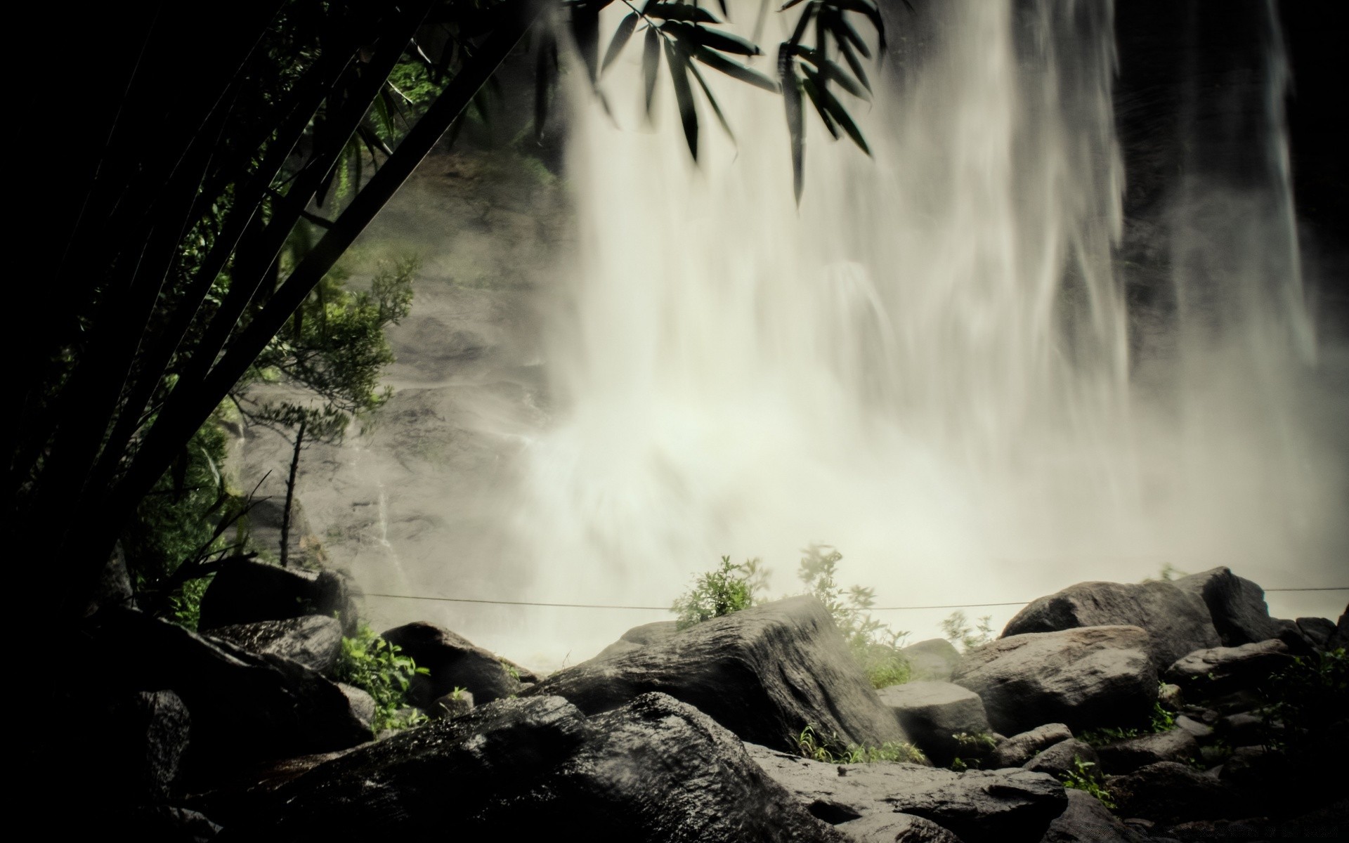 Großer Wasserfall mit Bäumen auf der rechten Seite