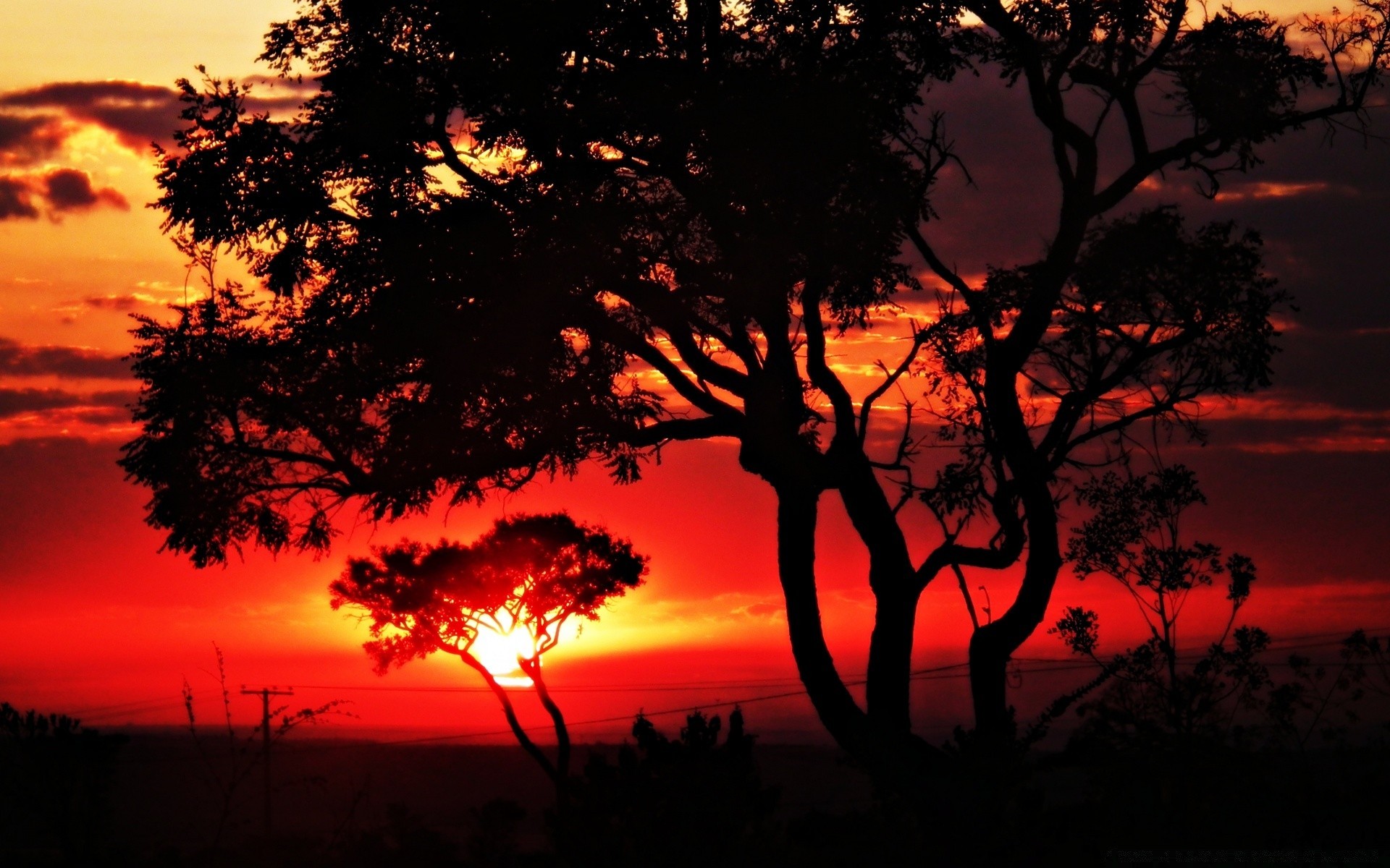 Rosa und orange sonnenuntergang mit bäumen im vordergrundRosa und orange Sonnenuntergang mit Bäumen im Vordergrund