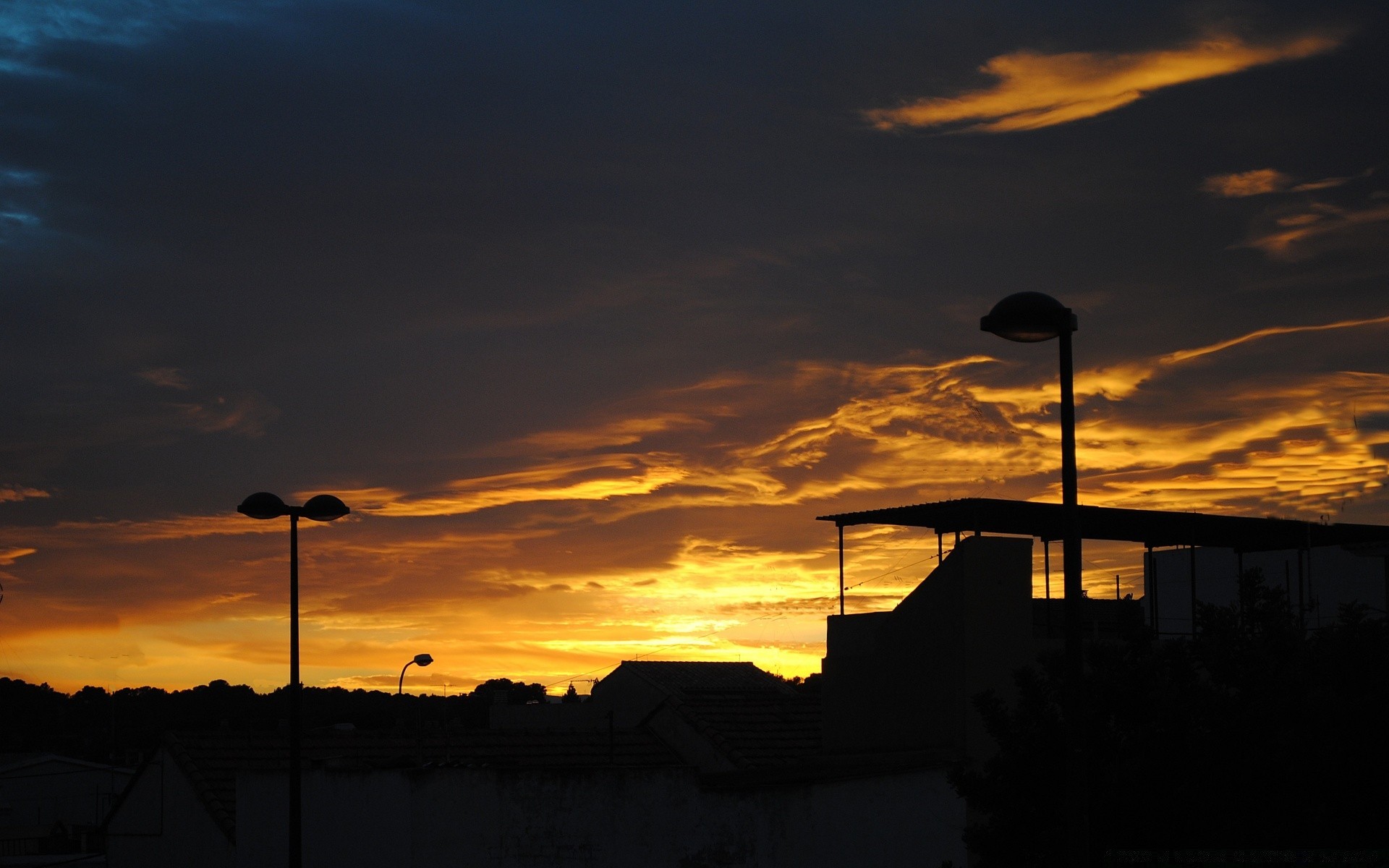 Sonnenuntergang vor dem hintergrund der fertighäuserSonnenuntergang vor dem Hintergrund der Fertighäuser