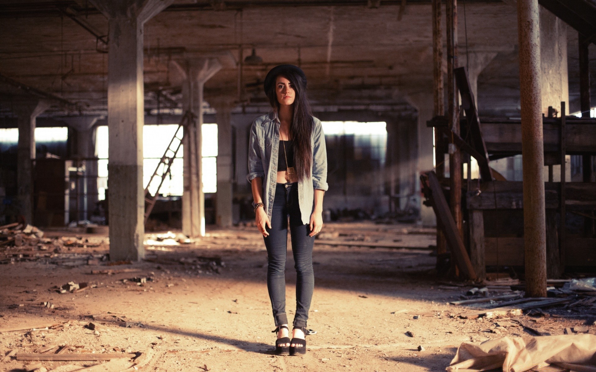 Ein verlassenes Gebäude und ein Mädchen