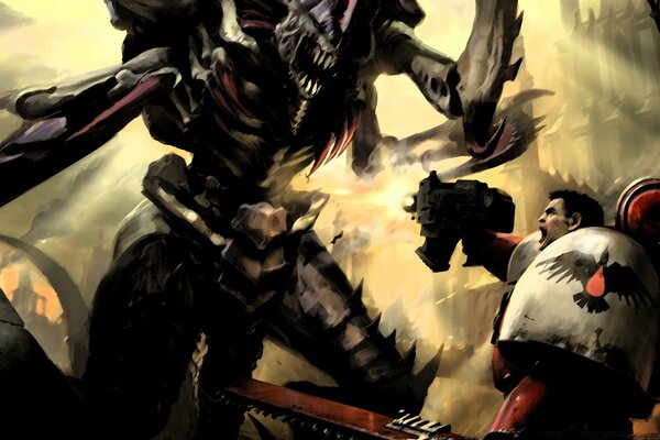 Mann mit einer waffe vor dem hintergrund der metropoleMann mit einer Waffe vor dem Hintergrund der Metropole