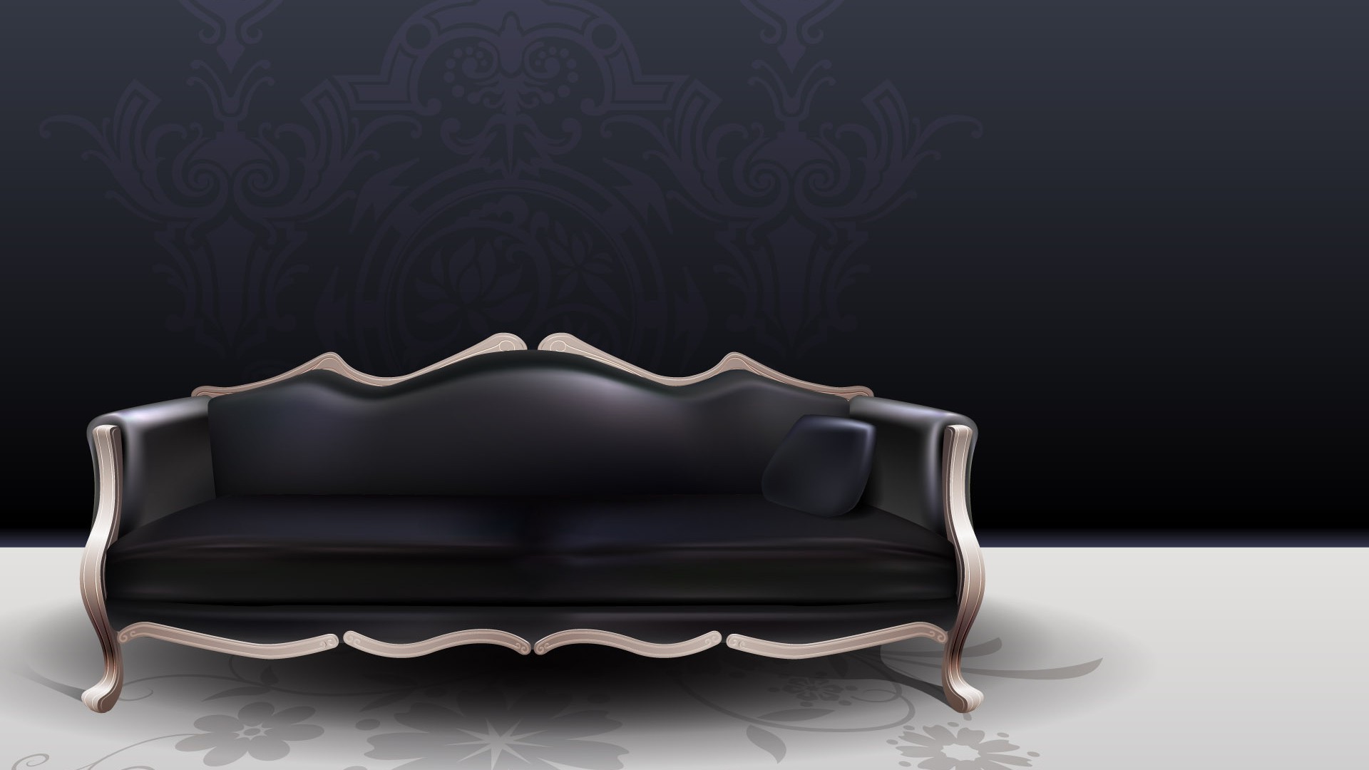 Luxuriöses schwarzes Vintage-Sofa auf schwarzem Hintergrund