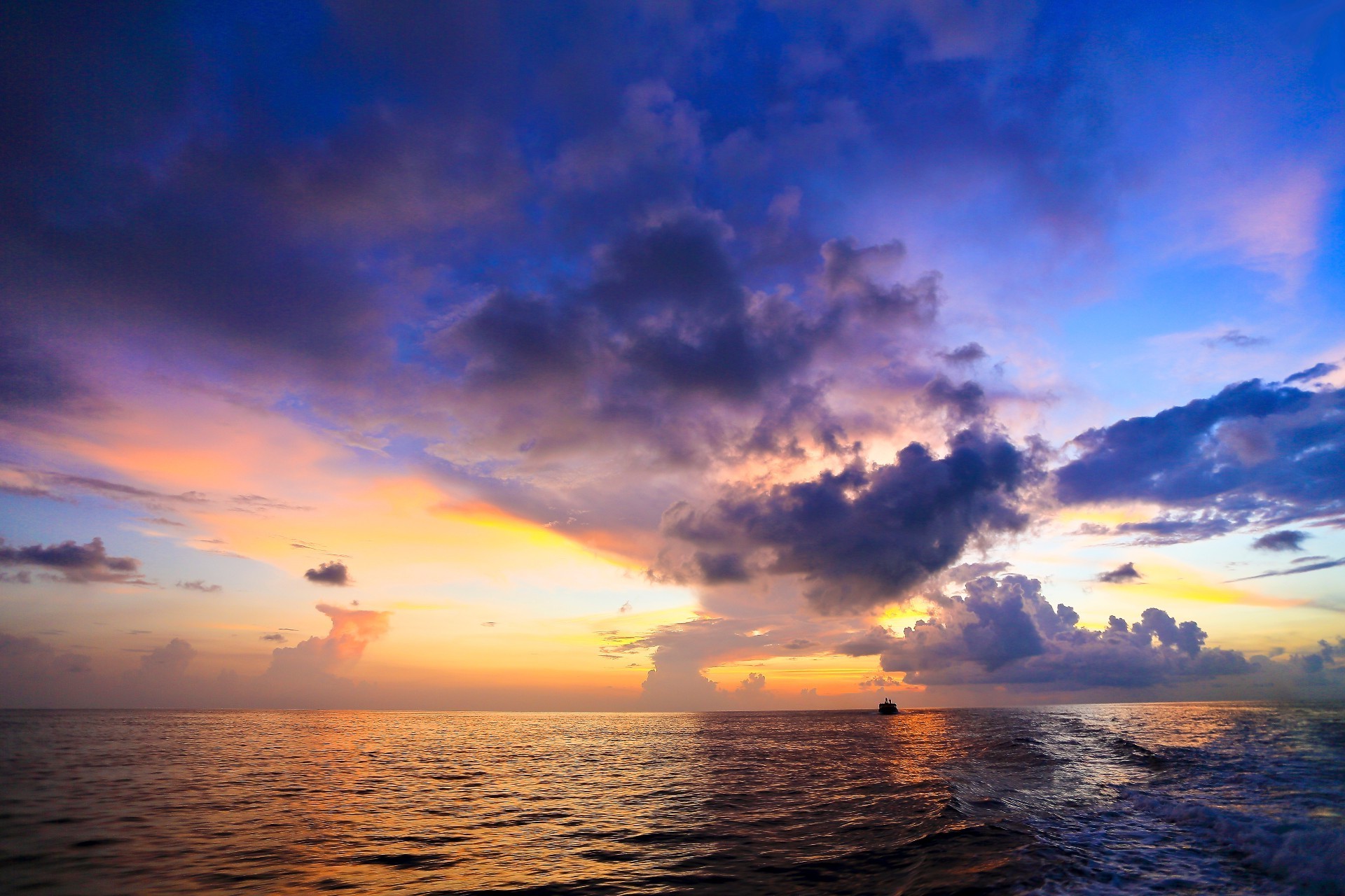 Reflexion des sonnenuntergangs in den gewässern des ozeansReflexion des Sonnenuntergangs in den Gewässern des Ozeans