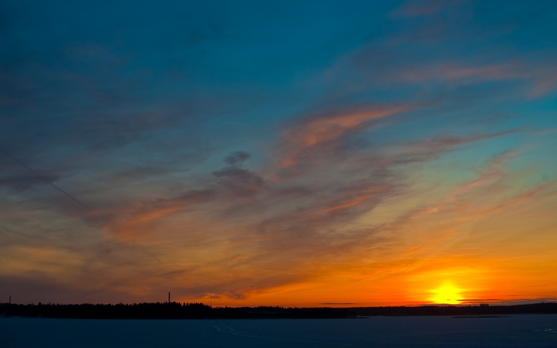 Die Sonne untergeht am Horizont über dem Meer